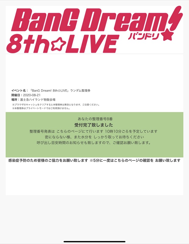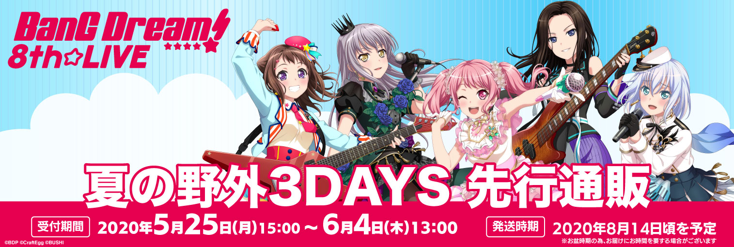 「BanG Dream! 8th☆LIVE」夏の野外3DAYS 本会場チケットにつきまして