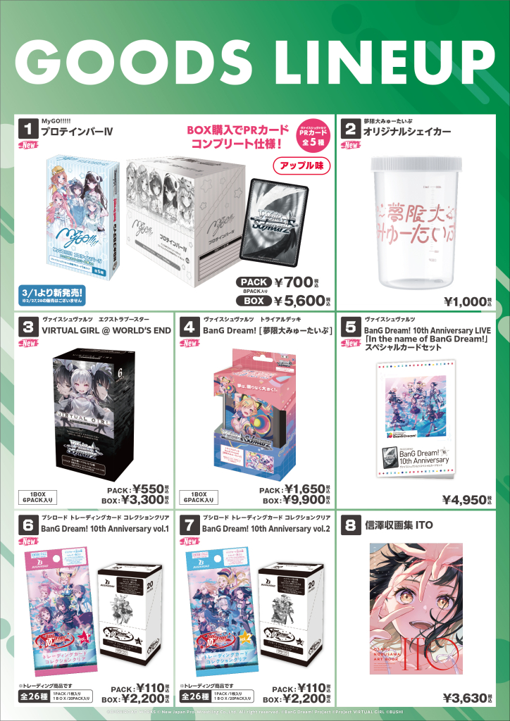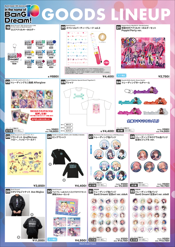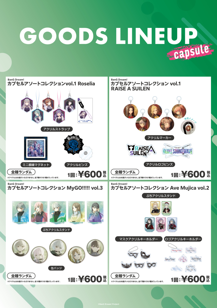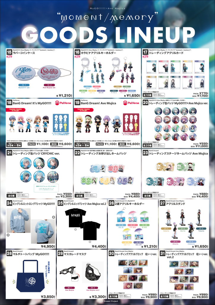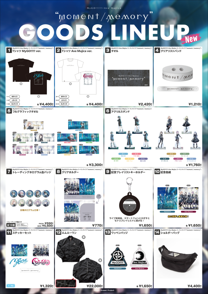 ※BanG Dream! 10th Anniversary LIVE「In the name of BanG Dream!」新商品は2月27日、28日分の取り置きがございます。MyGO!!!!!×Ave Mujica ツーマンライブ「“moment / memory”」新商品は各日分の取り置きがございますが、在庫数量には限りがございますのでご留意ください。