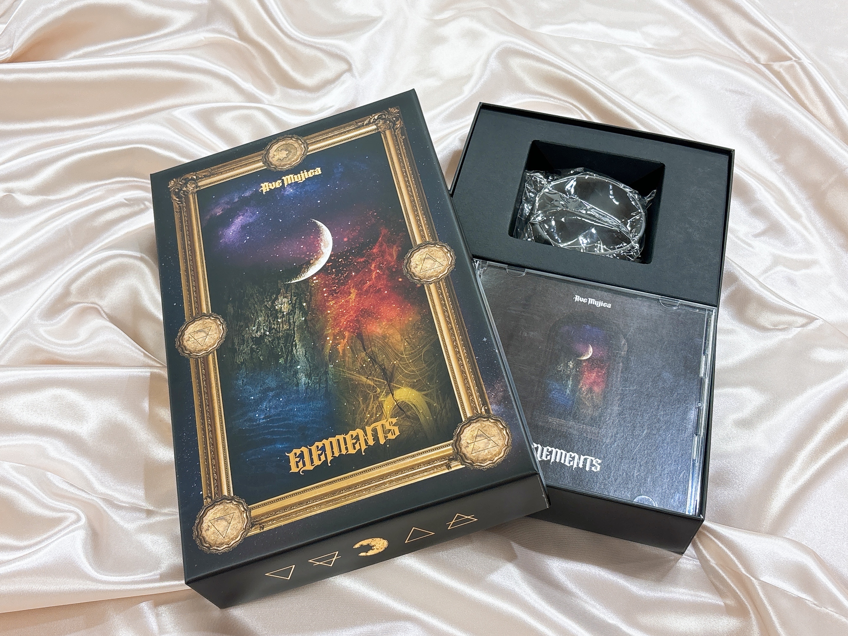 数量限定生産特装盤には、配信ジャケットとしても採用されている、収録楽曲をイメージしたデザインの「ELEMENTS 特製ステッカーセット」と、「Ave Mujica 2nd LIVE「Quaerere Lumina」シリコンバンド」の特別カラーVer.が付属。