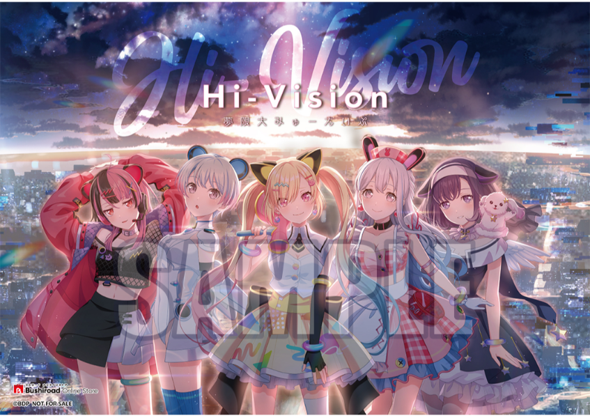 表題曲「Hi-Vision」は終末系ビジュアルノベルゲーム"VIRTUAL GIRL @ WORLD'S END"の主題歌に抜擢された初のタイアップ楽曲。疾走感がある中でも光る、温かみのあるメロディーが特徴の本楽曲は、ゲームの世界観に寄り添いながらも夢限大みゅーたいぷらしい未来の視点を持った意欲作となった。