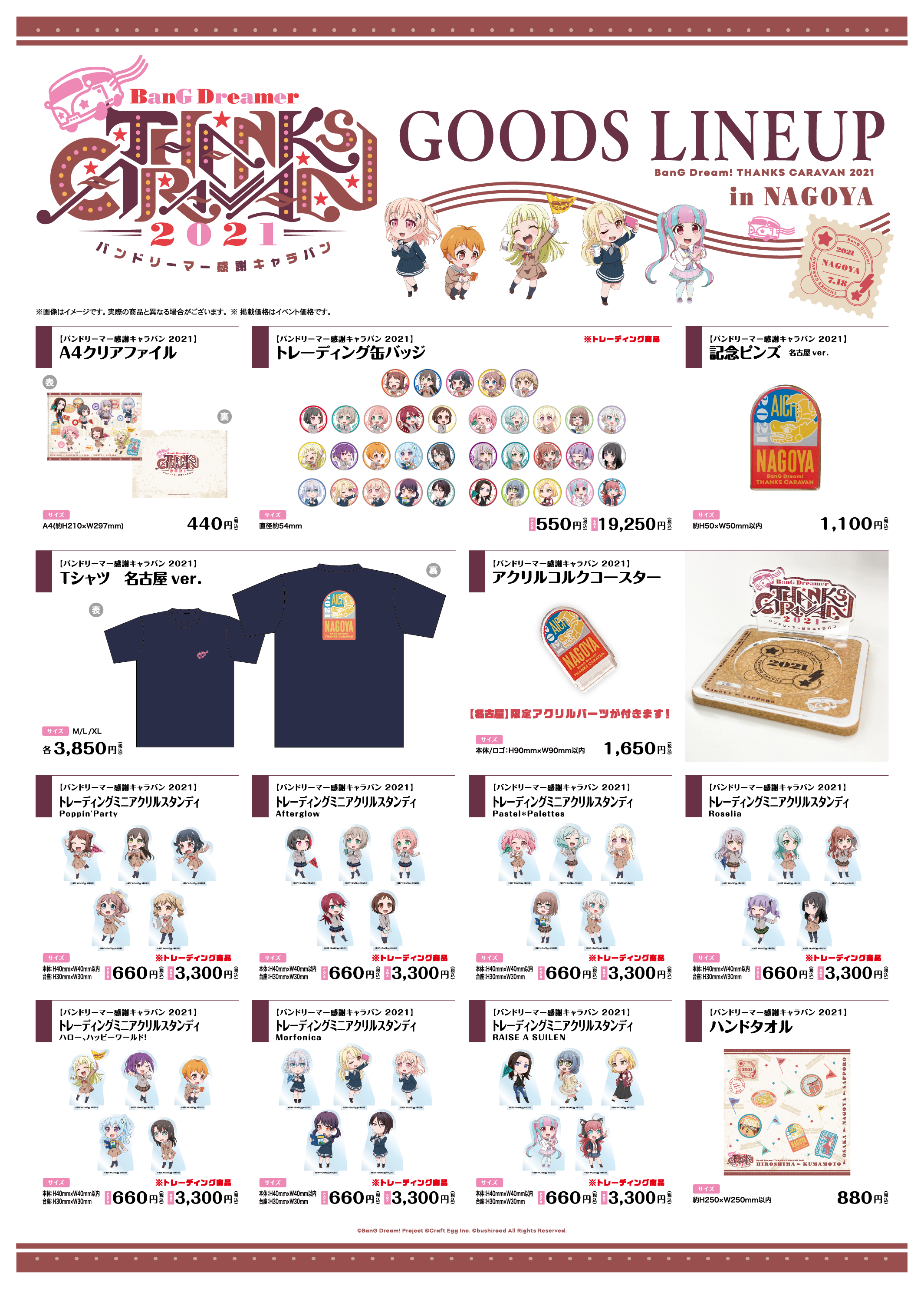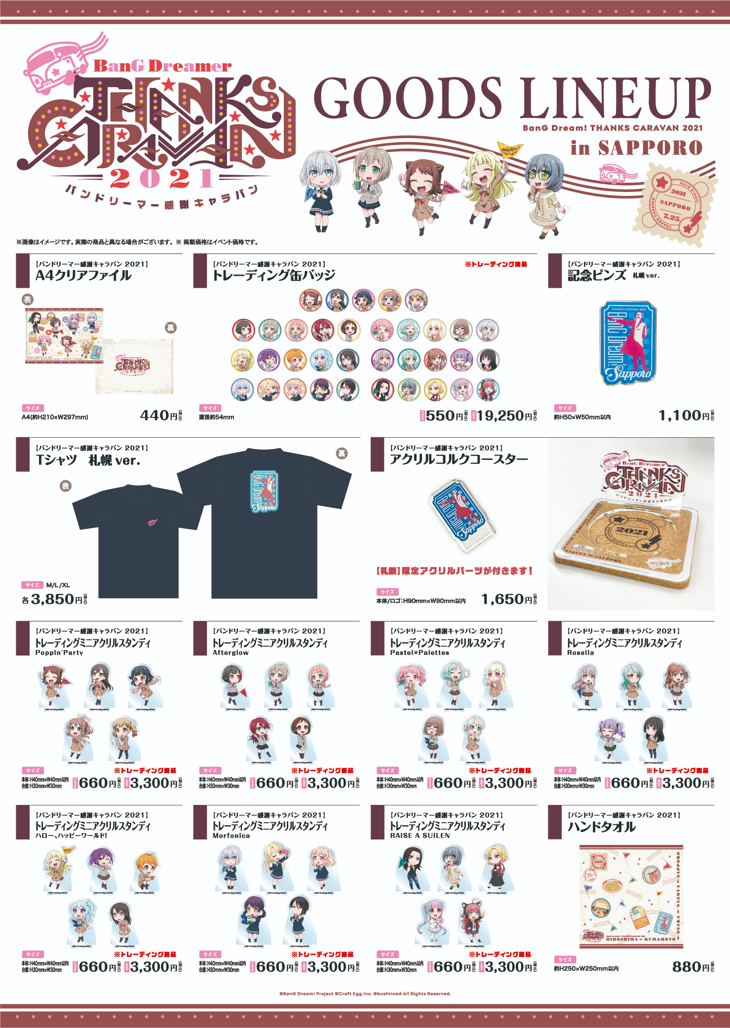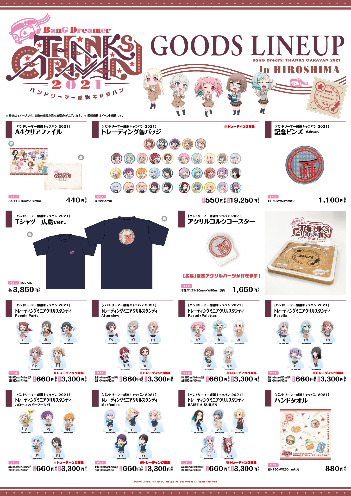 「バンドリーマー感謝キャラバン 2021」での販売新商品ならびにバンドリ!関連グッズの販売を致します。