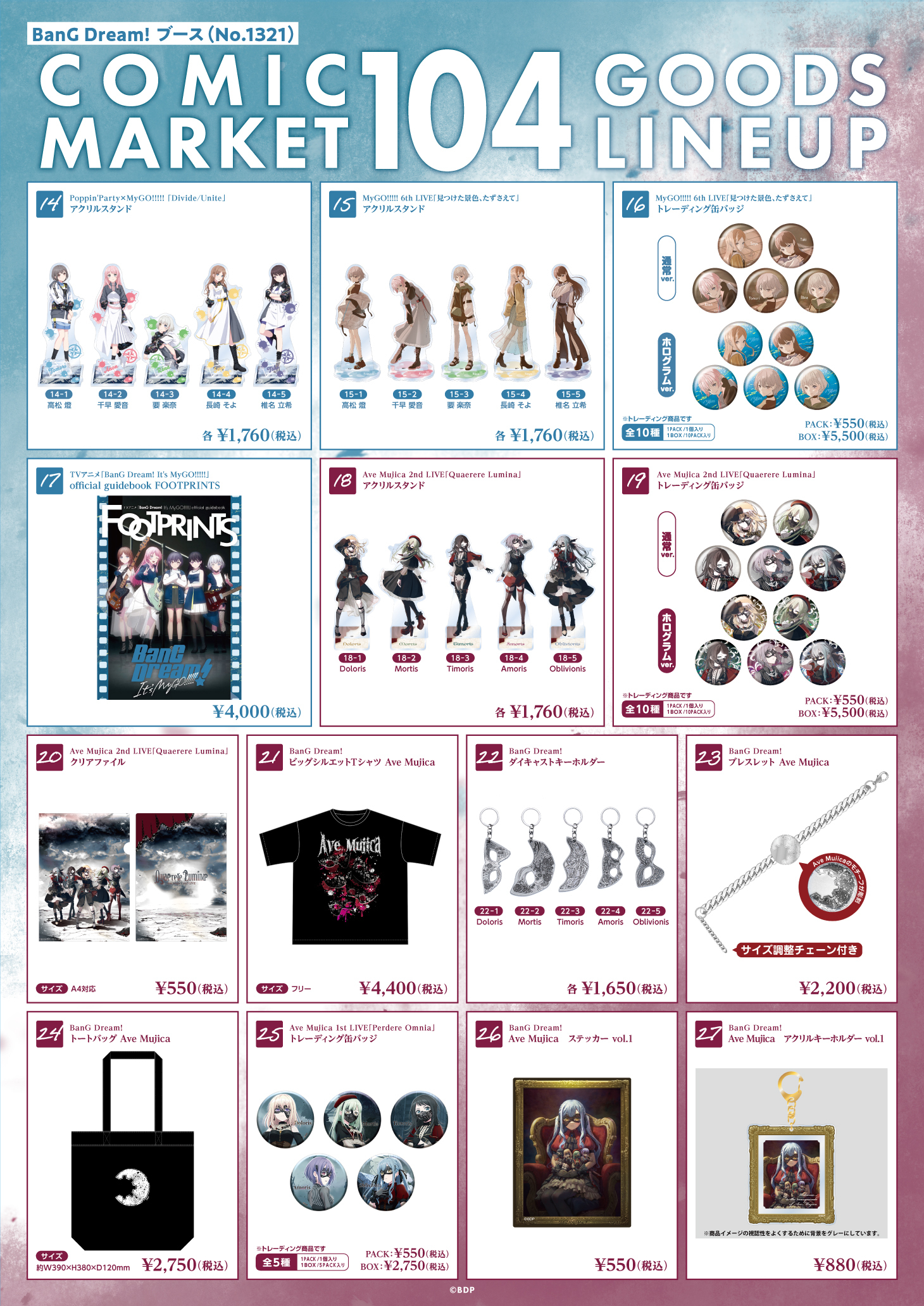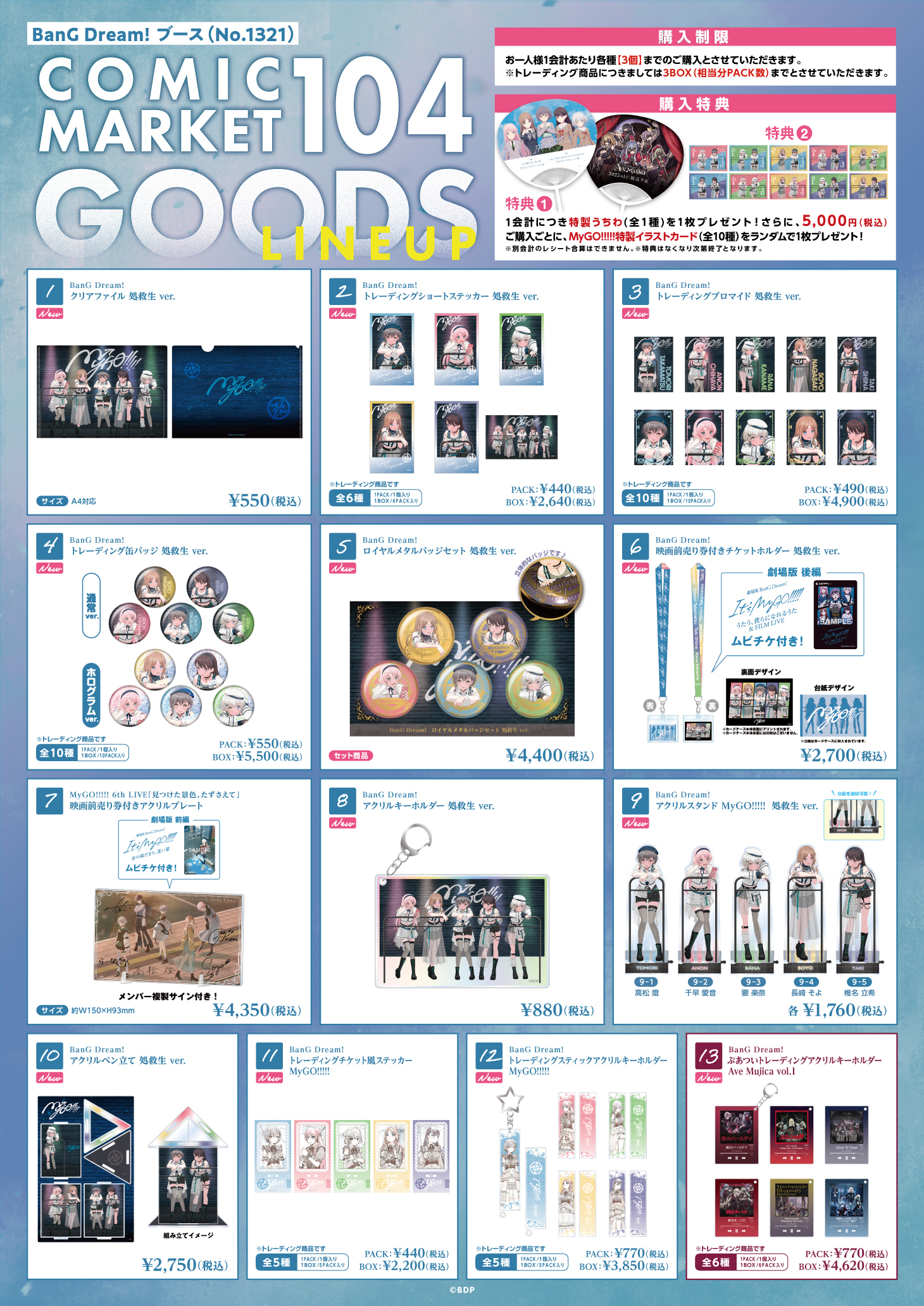 コミックマーケット104にて販売するBanG Dream!(バンドリ!)新商品の通販を実施いたします!