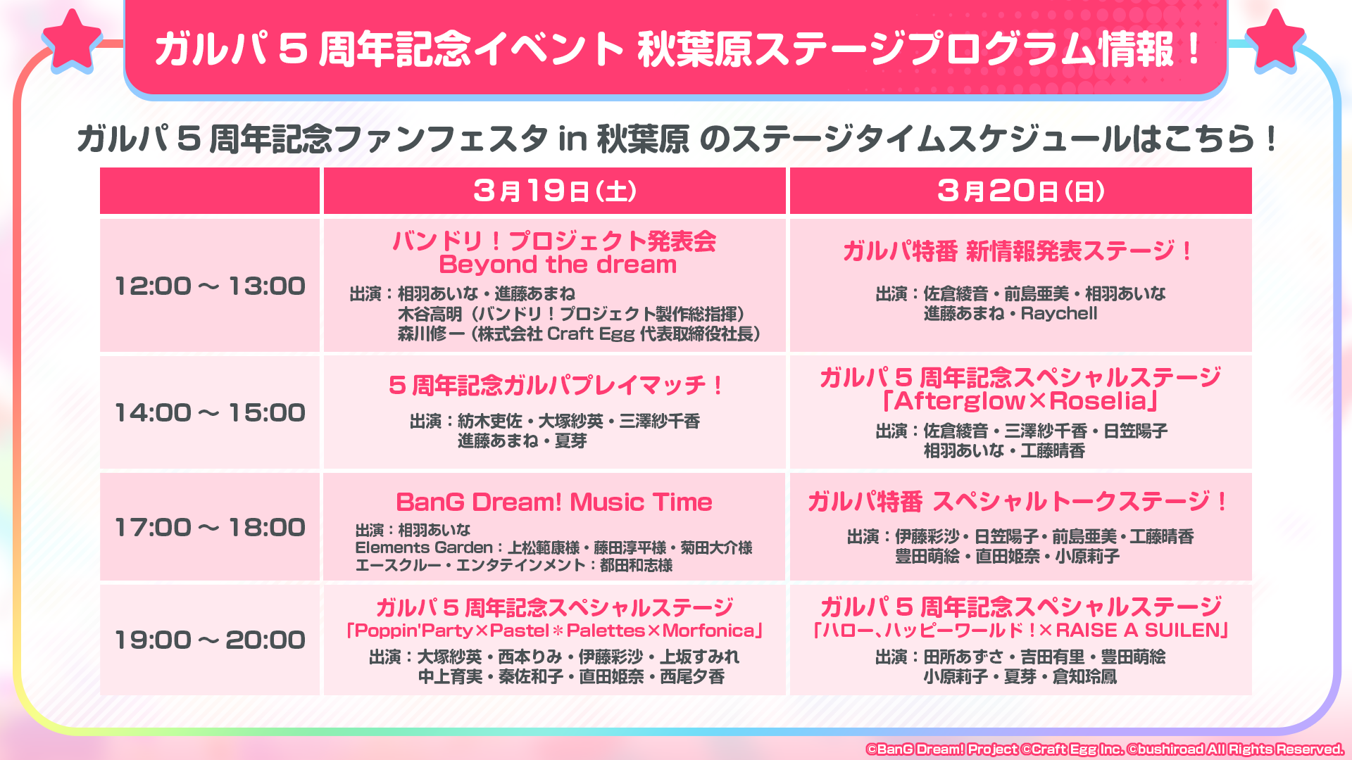 Poppin’Party、Pastel*Palettes、Morfonicaのキャストが集まるトークステージです!お楽しみに♪