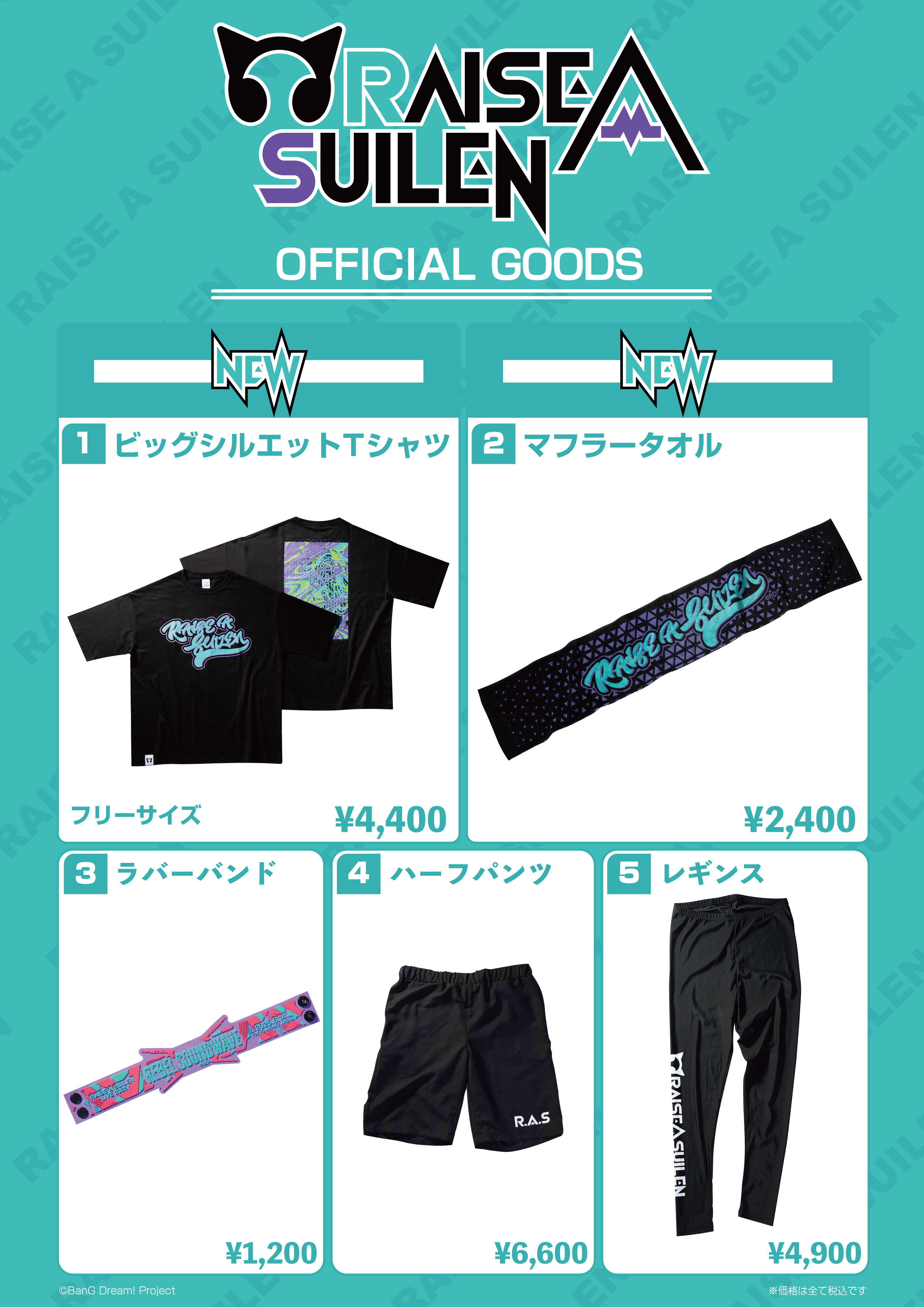 会場内の「アーティストグッズ売り場」にてRAISE A SUILEN関連商品の販売が決定いたしました。また会場先行で新商品の販売もいたします。