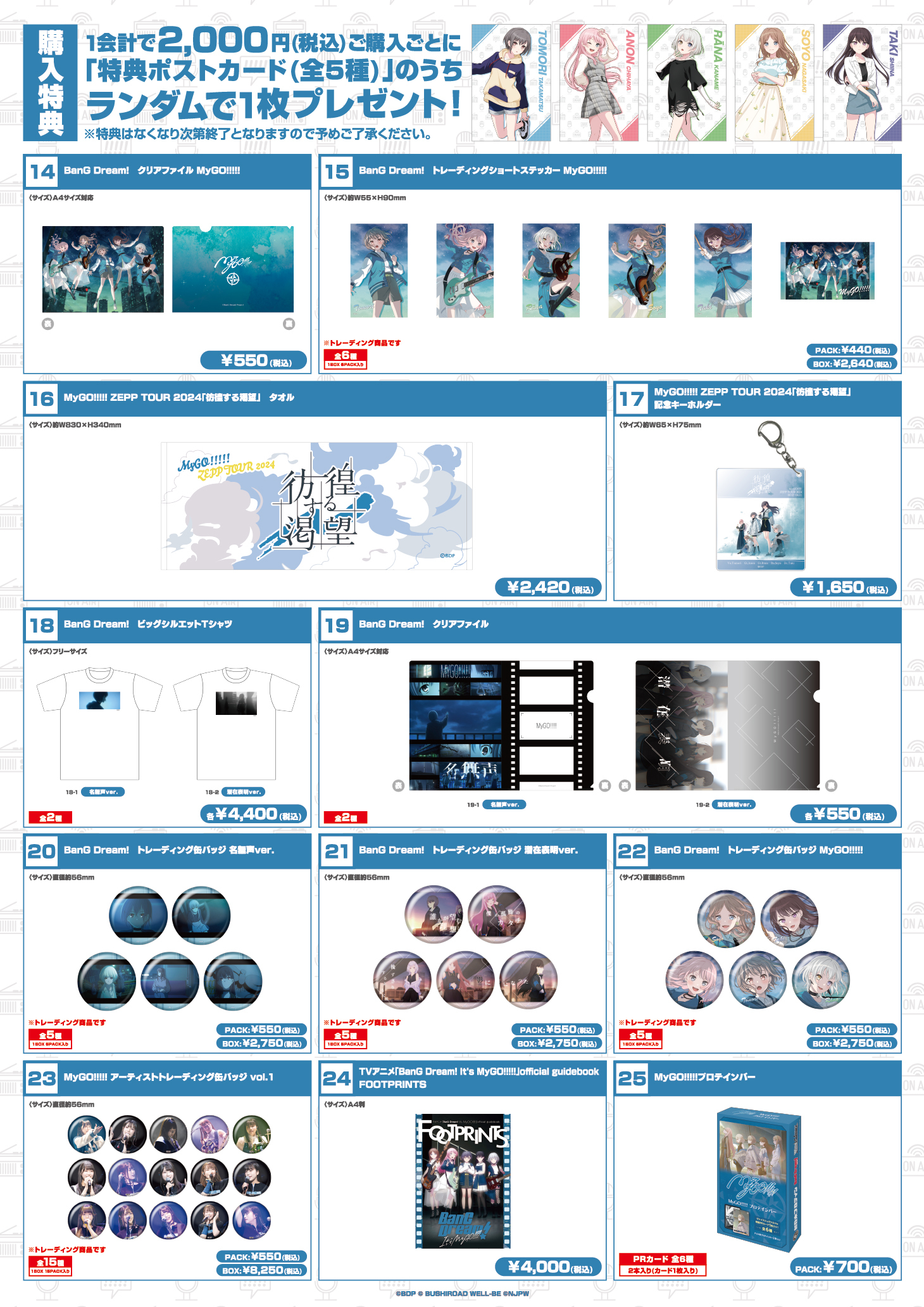 1会計で2,000円(税込)ごとのご購入で「特典ポストカード(全5種)」をランダムで1枚プレゼントいたします。
