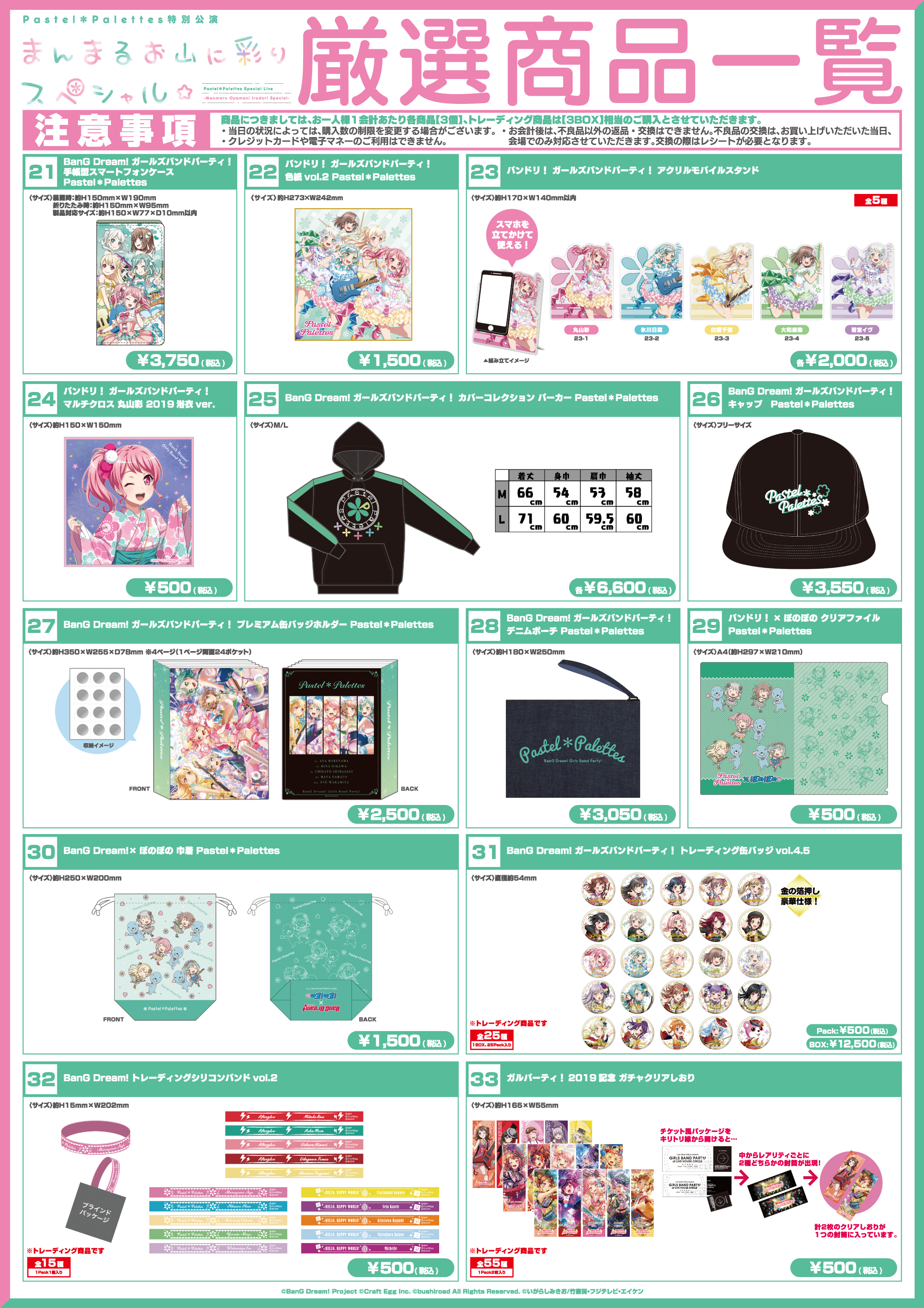 ※「Pastel*Palettes特別公演 〜まんまるお山に彩りスペシャル☆〜」で販売を予定している商品は今後の各種イベントでの販売を行う予定があります。