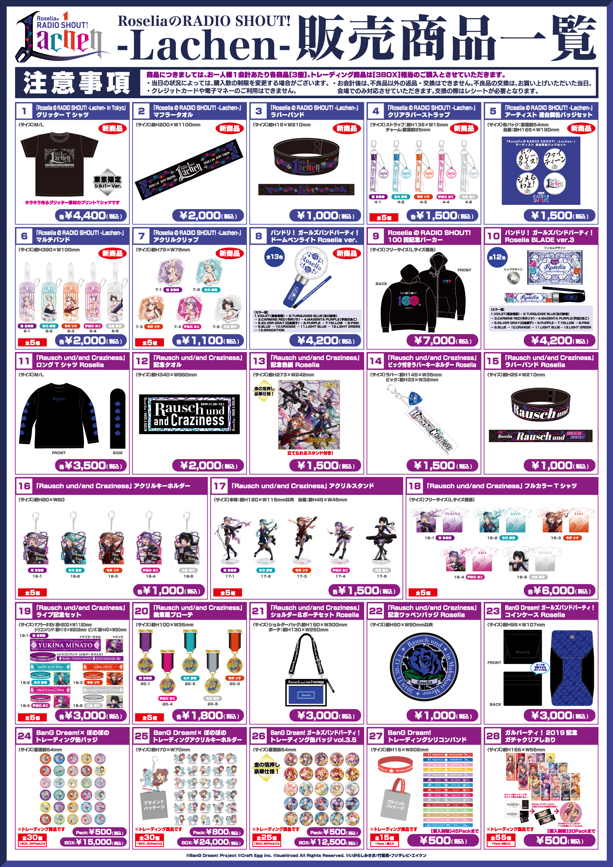 ※「RoseliaのRADIO SHOUT! -Lachen- in Tokyo」で販売を予定している商品は今後の各種イベントでの販売を行う予定があります。