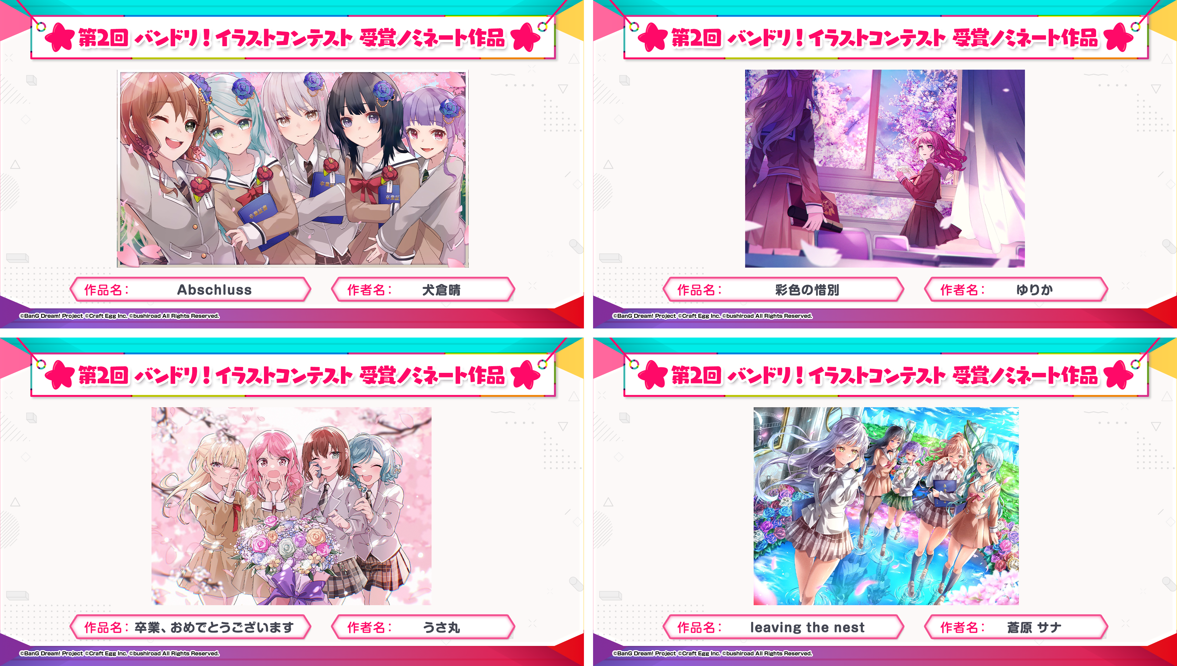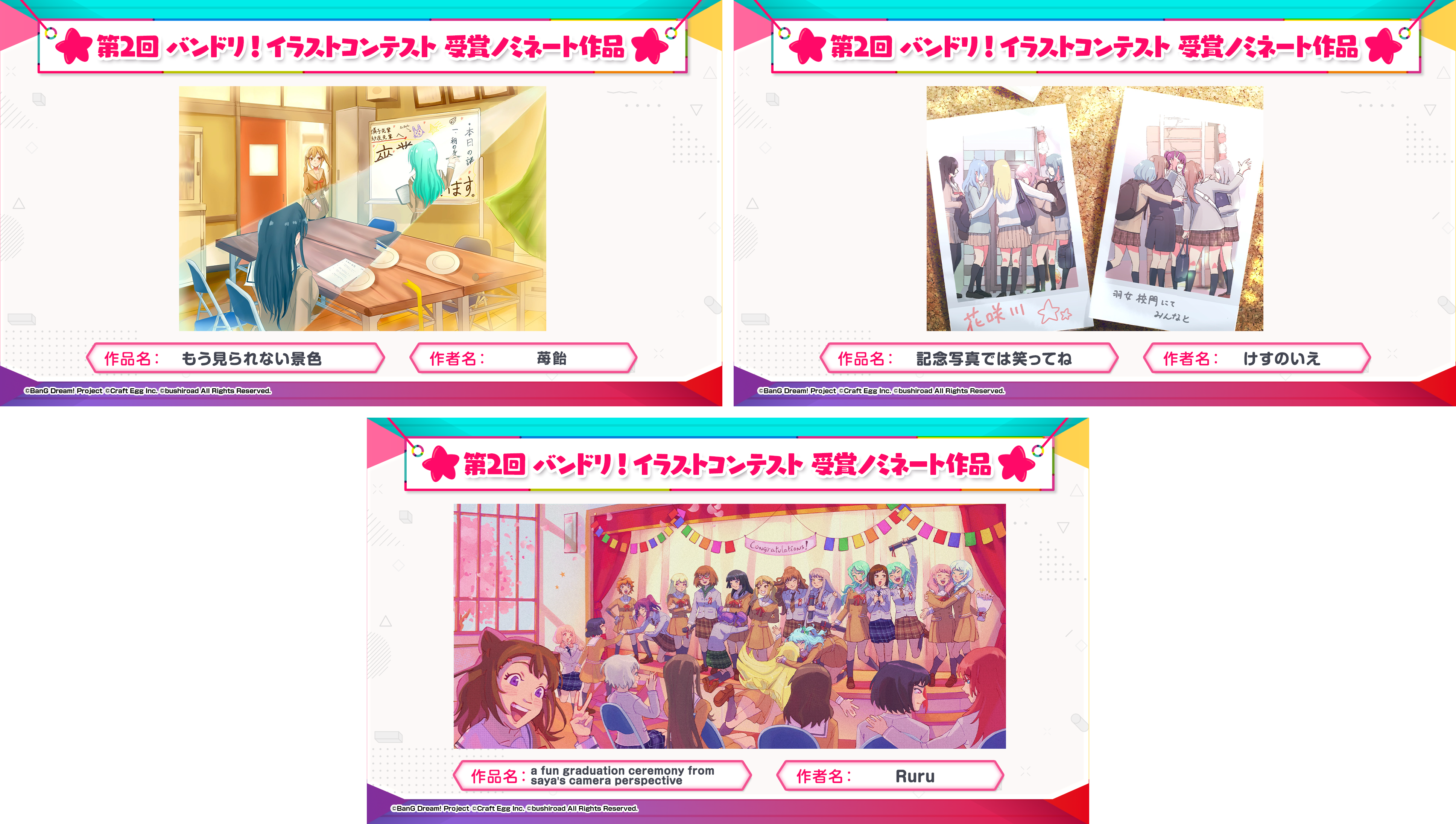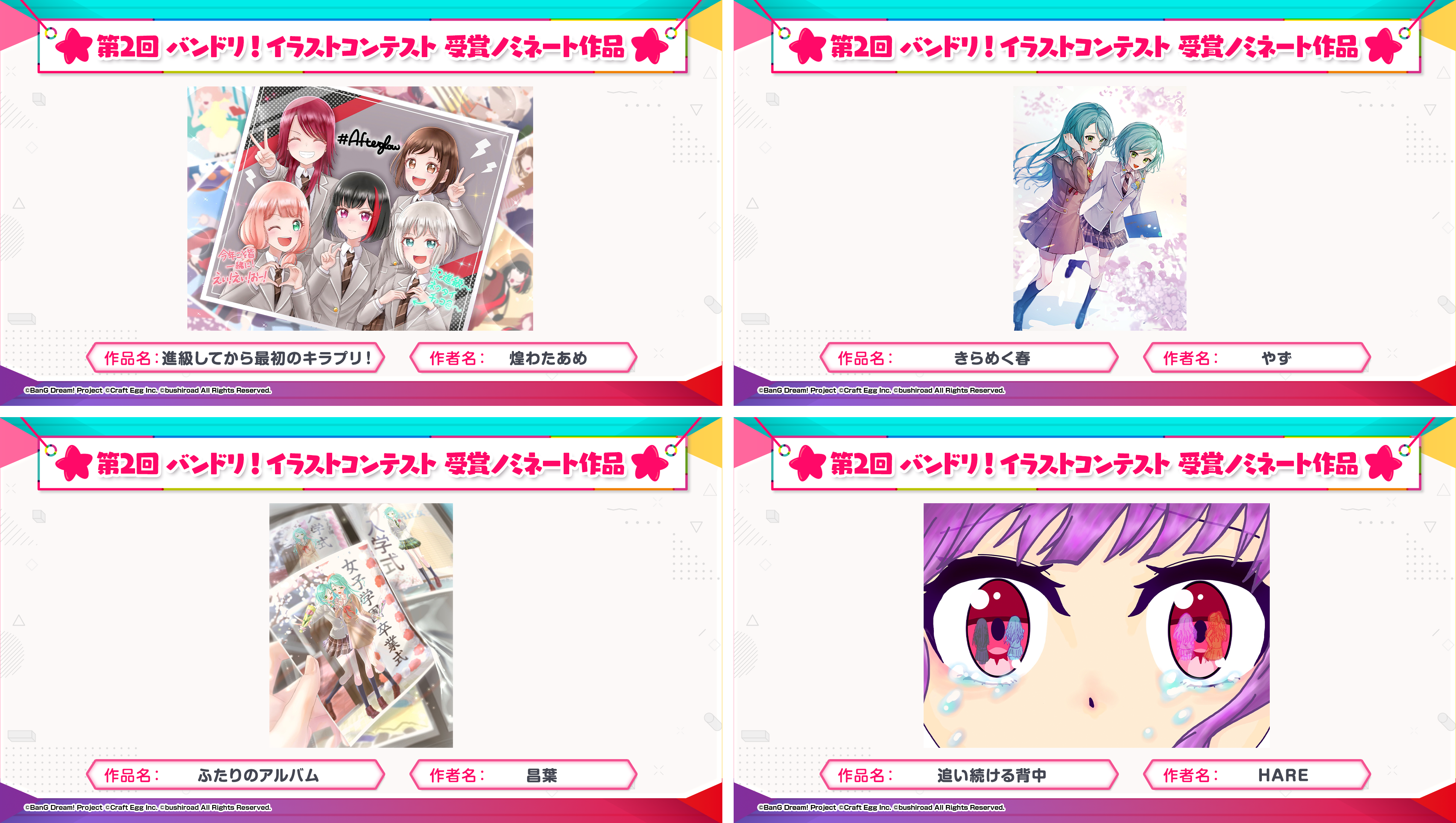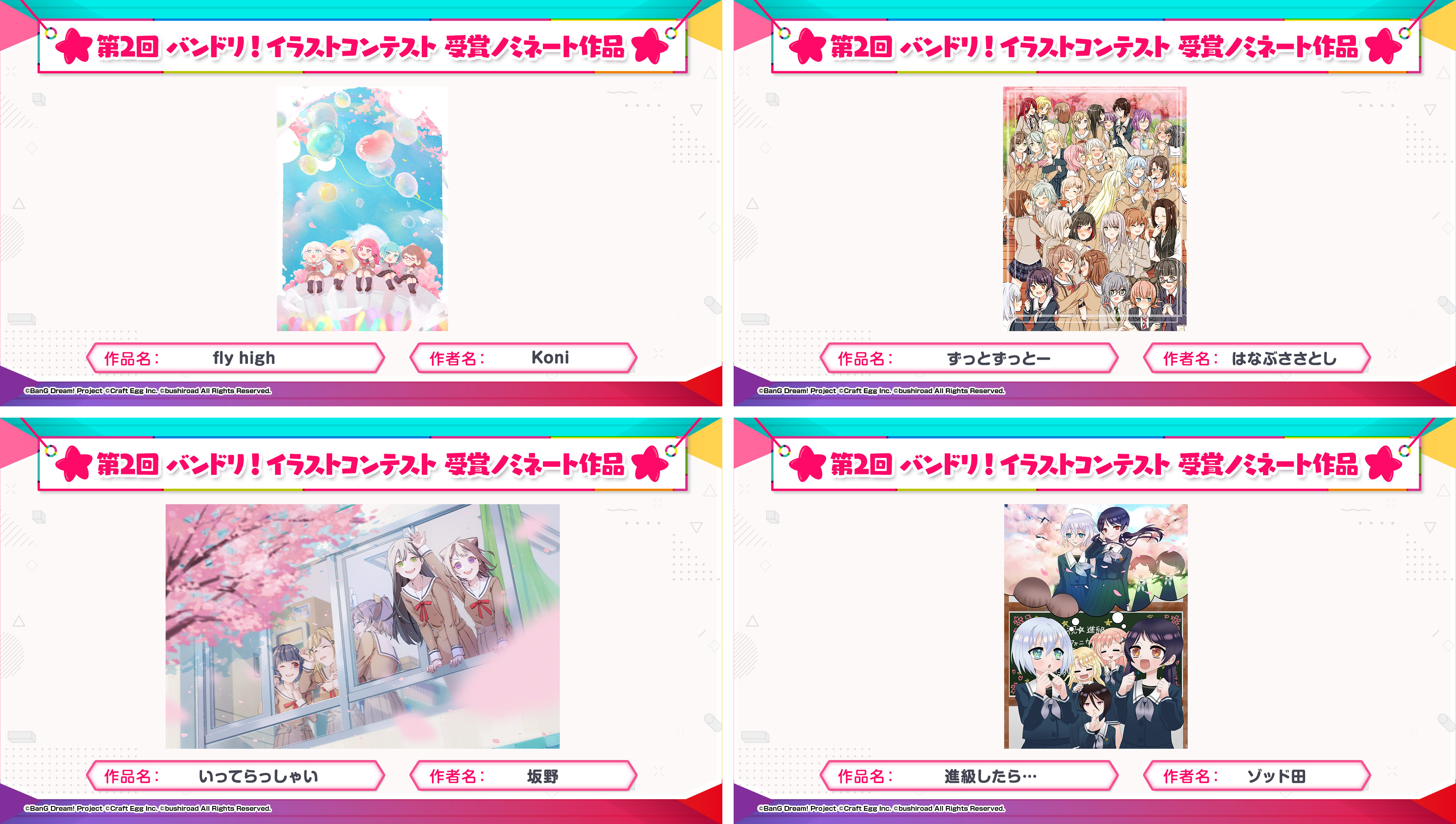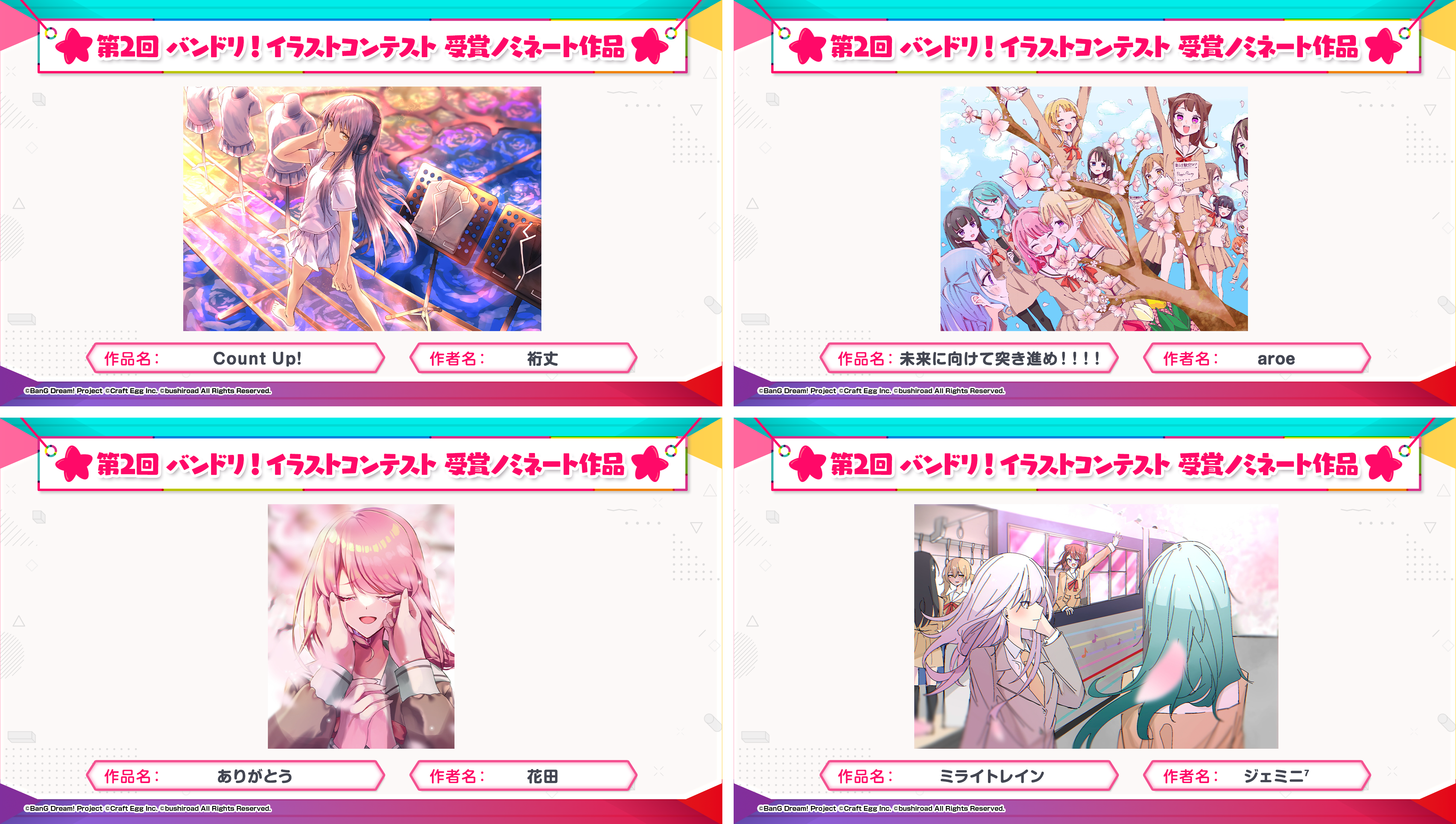 ※すべての受賞作品は、主催者によって「BanG Dream!」に関連する展示、印刷物、販売物等に使用される可能性がございます。