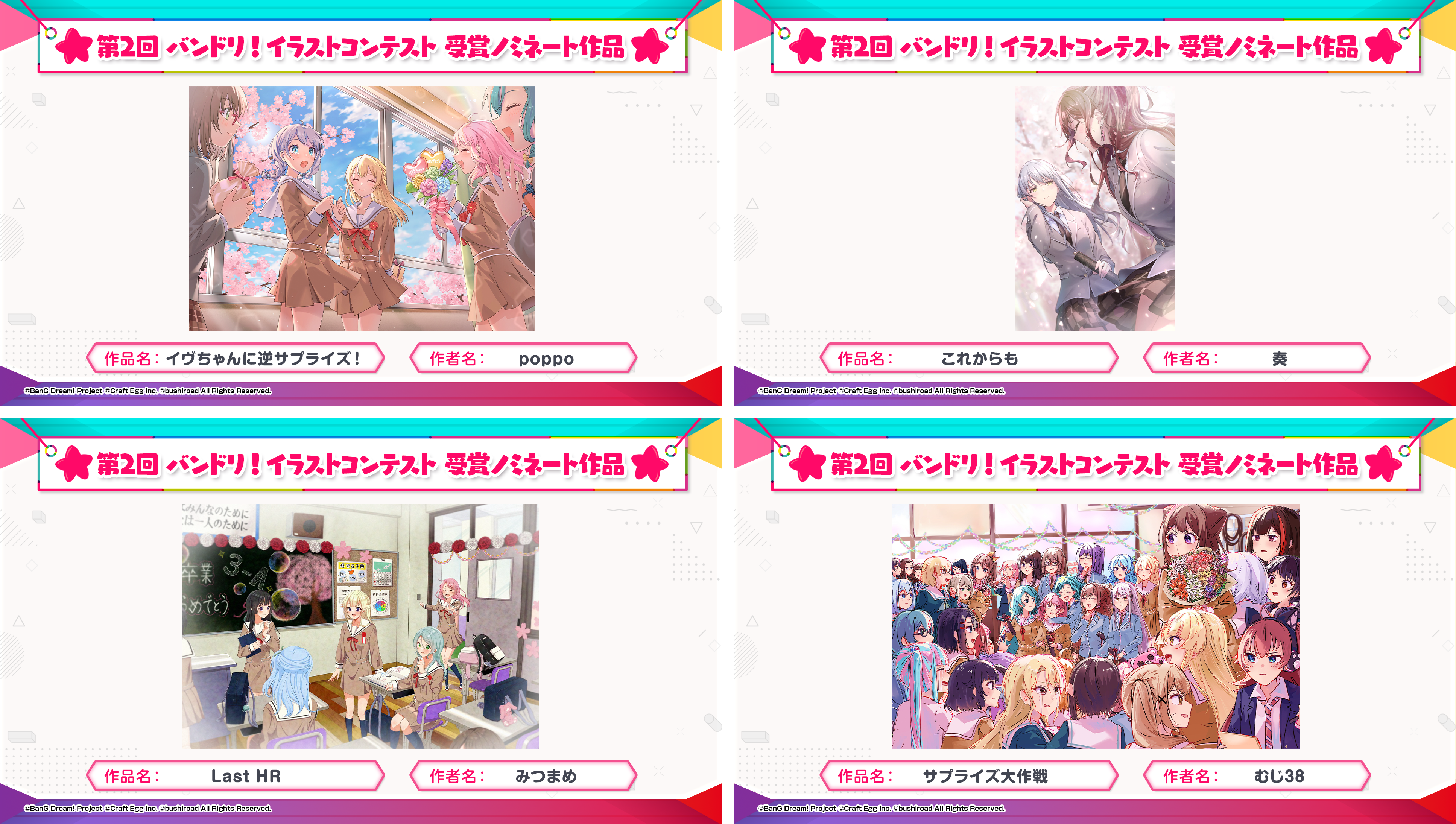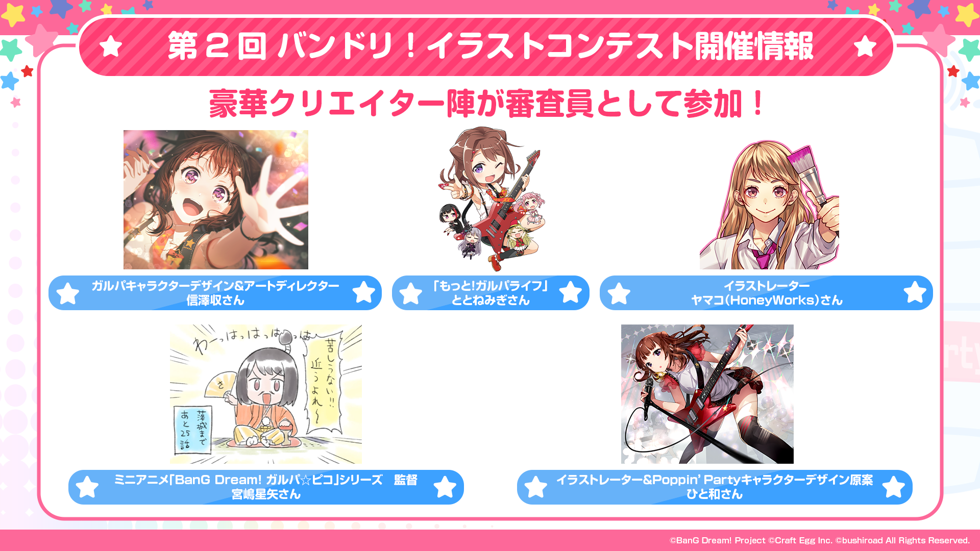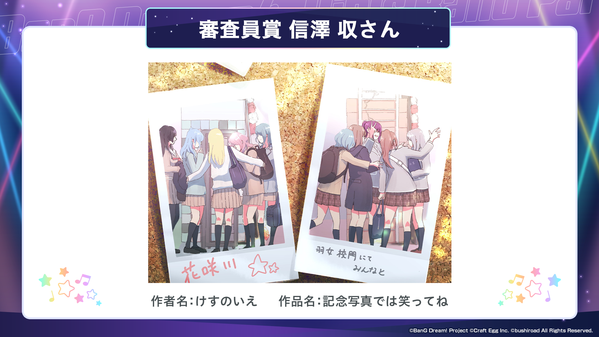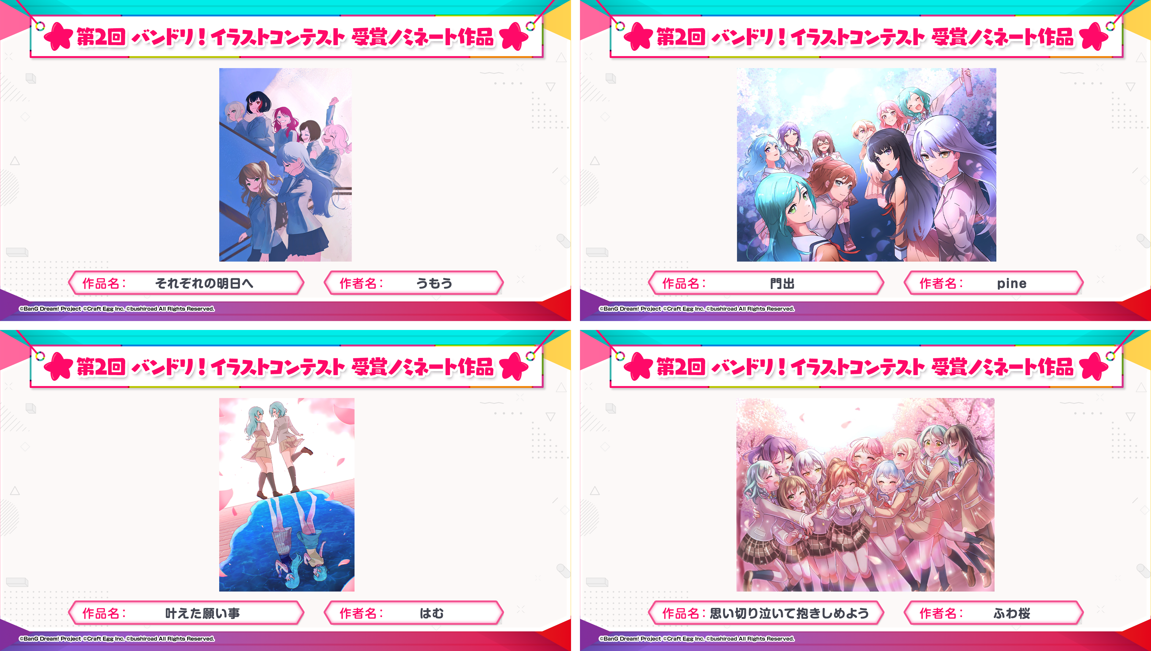 ※すべての受賞作品は、主催者によって「BanG Dream!」に関連する展示、印刷物、販売物等に使用される可能性がございます。
