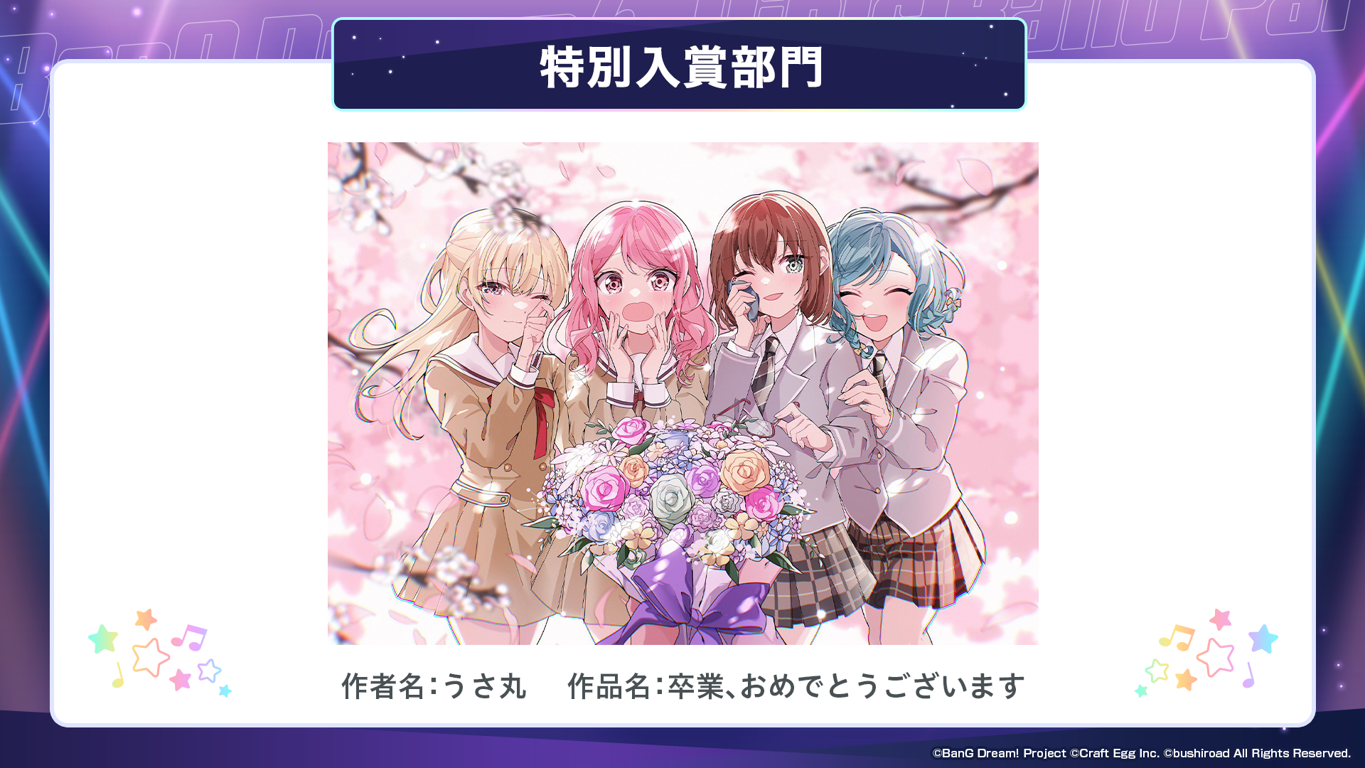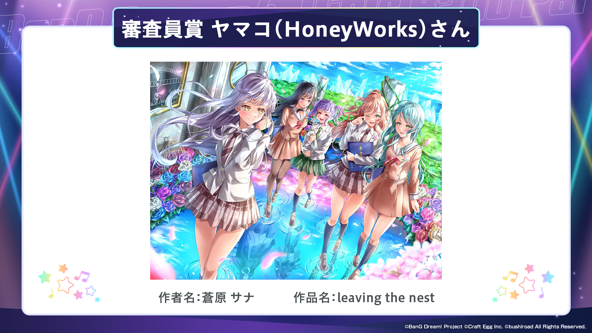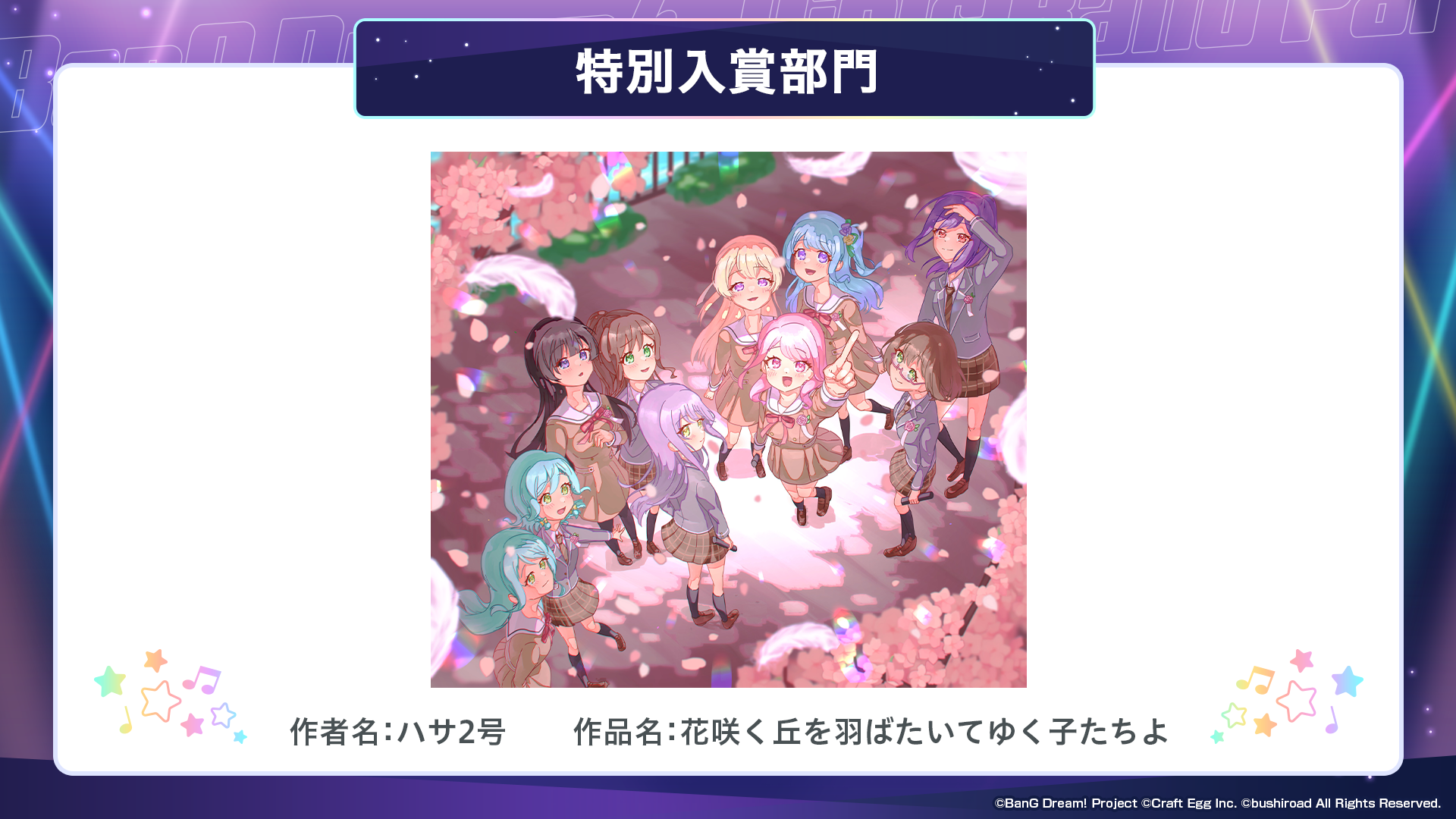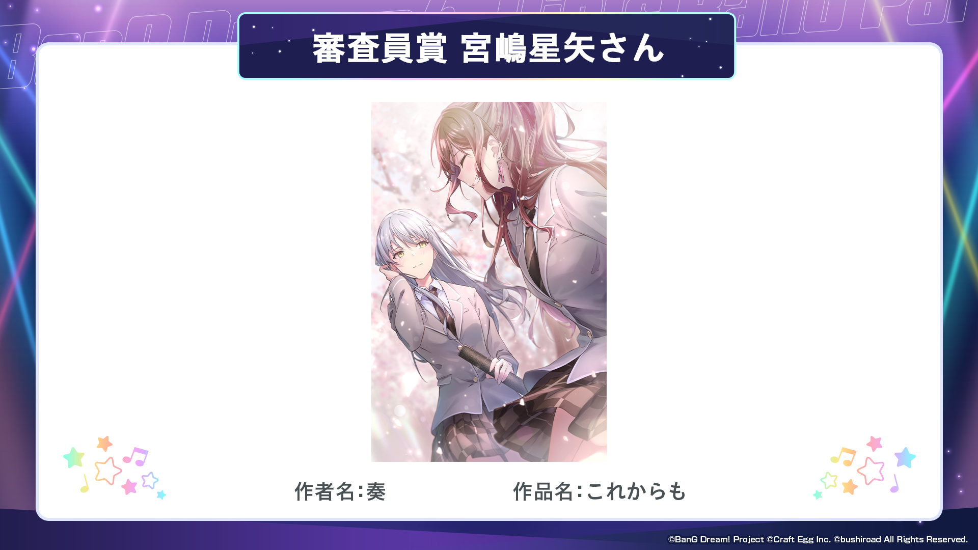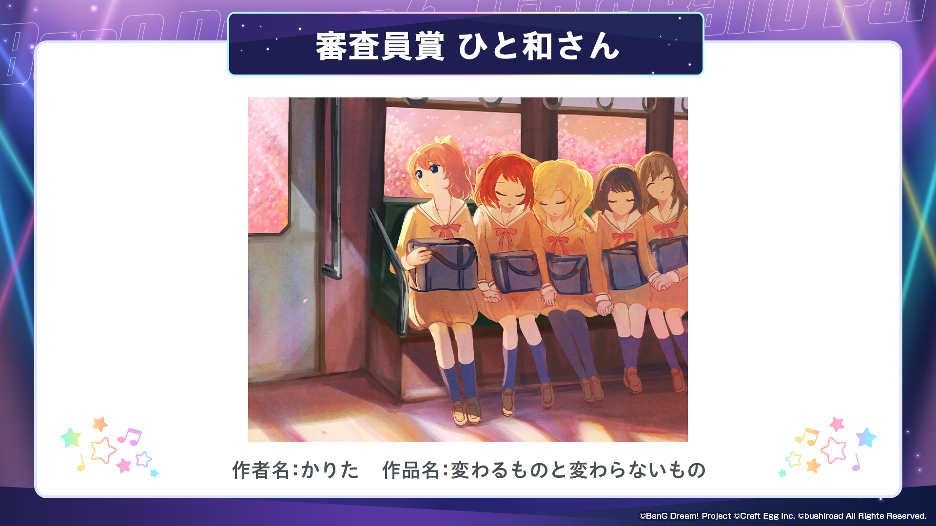 ※すべての受賞作品は、主催者によって「BanG Dream!」に関連する展示、印刷物、販売物等に使用される可能性がございます。