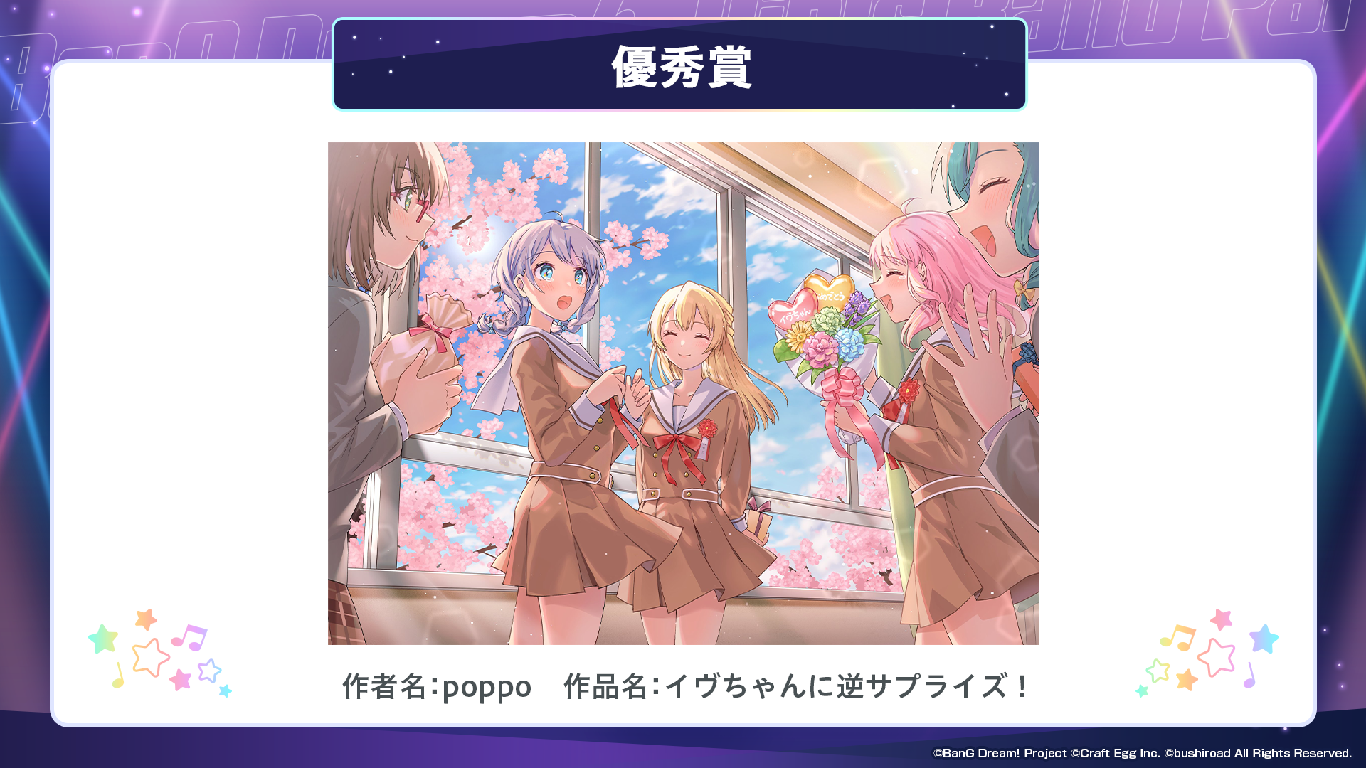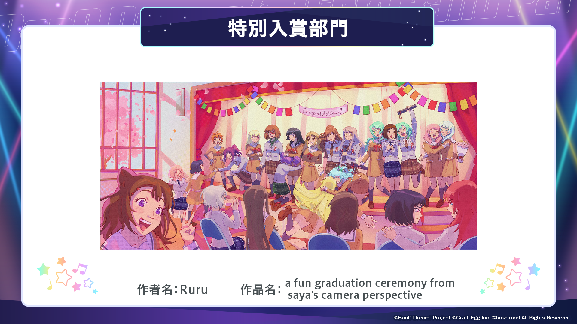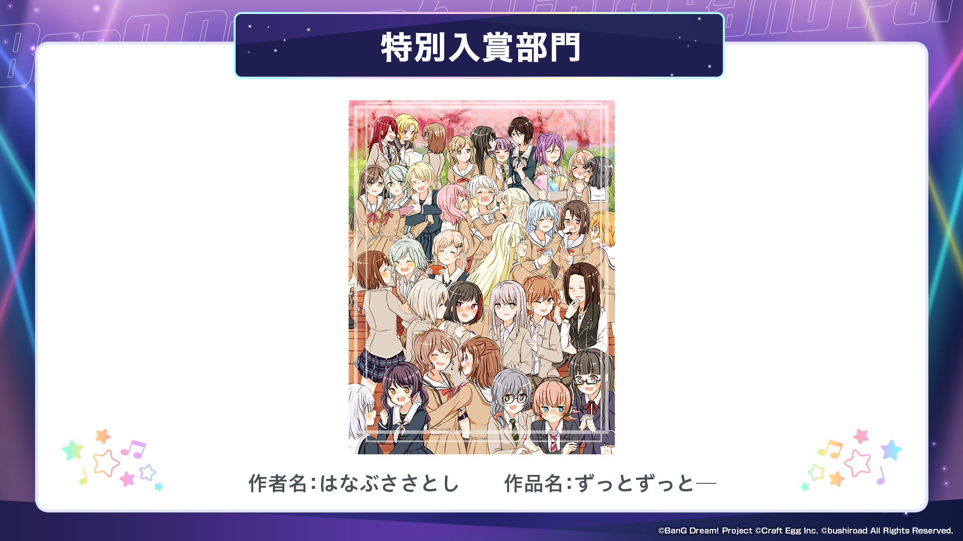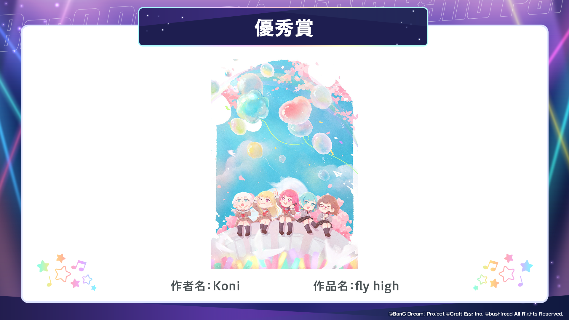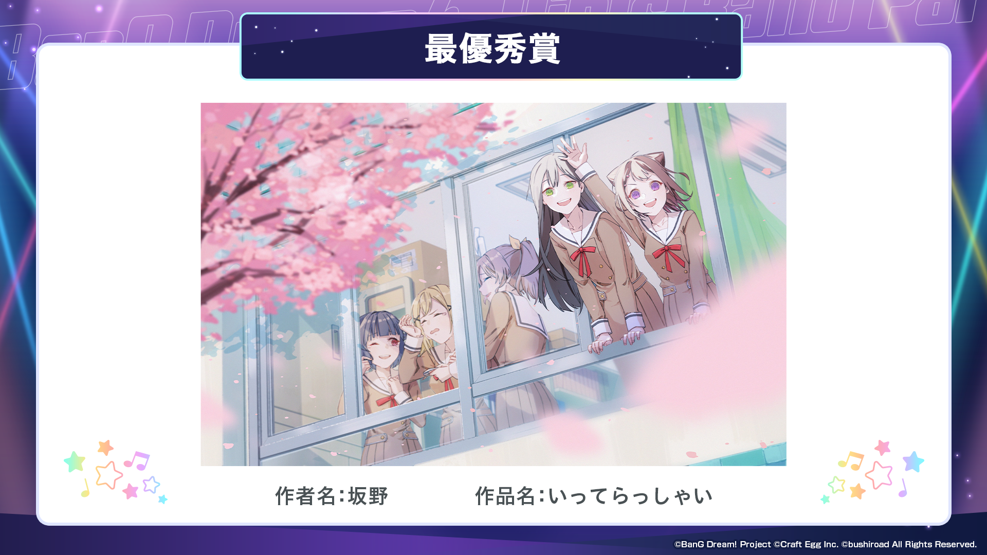 ※すべての受賞作品は、主催者によって「BanG Dream!」に関連する展示、印刷物、販売物等に使用される可能性がございます。