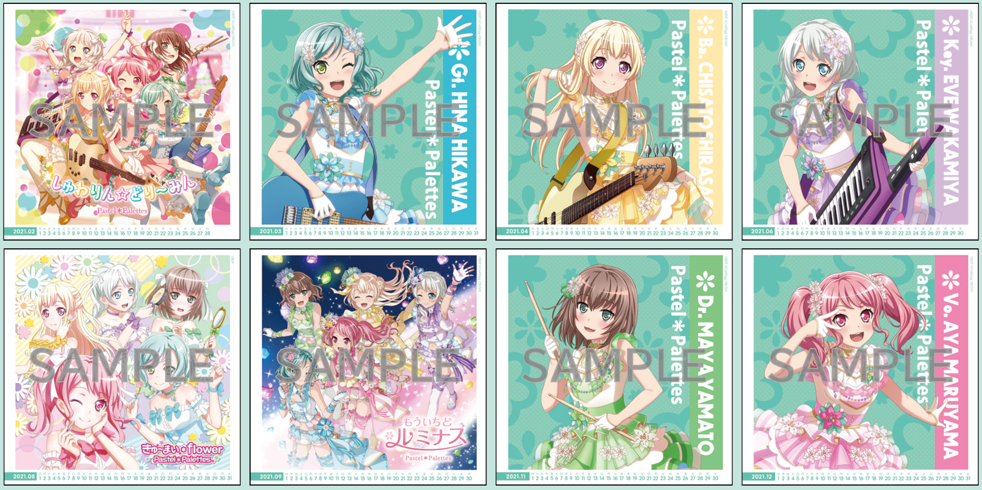 「2021年バンドリ!オリジナルカレンダー Pastel*Palettes Ver.(全8種 ※8か月分・CDジャケットサイズと同一)」