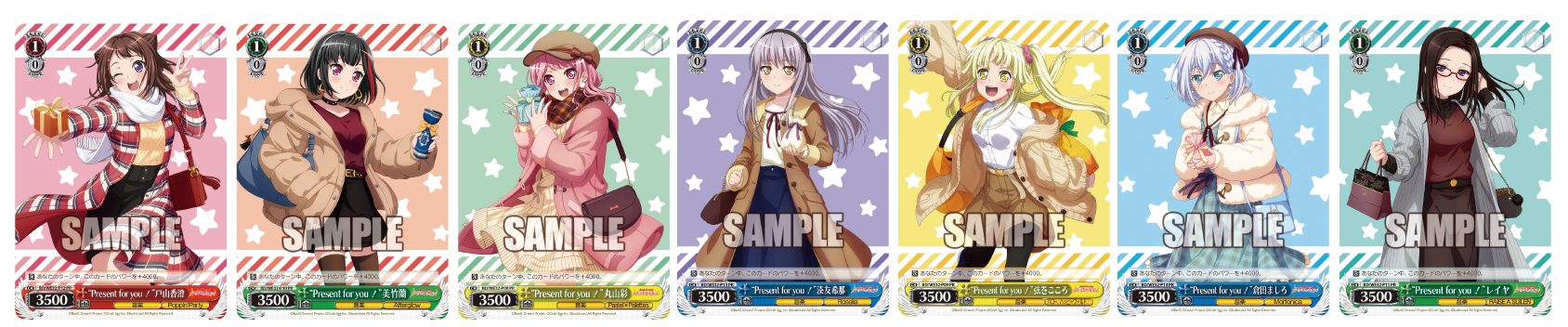 開催内容:期間中、開催店舗にて『BanG Dream!』関連のキャラクターグッズ、書籍(月刊ブシロード含む)、グラッテ商品をご購入・ご予約1,000円(税込)毎に、または、CD・DVD・Blu-ray(2020年11月以前に発売された旧譜のみ)をご購入1本毎に、特典【キラキラステッカー(全42種)】と【ヴァイスシュヴァルツ PRカード(全7種)】 を、それぞれランダムで1枚ずつプレゼントいたします。