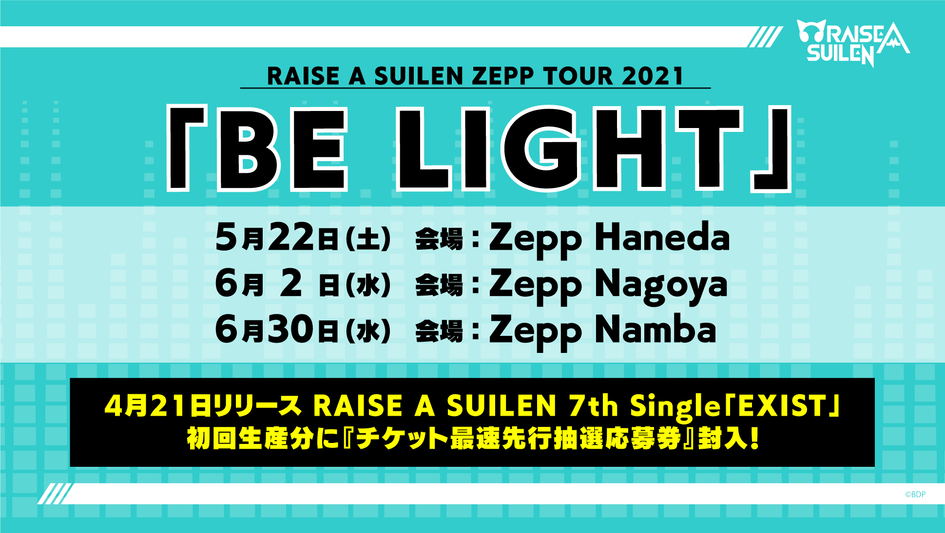 RAISE A SUILEN ZEPP TOUR 2021「BE LIGHT」 開催決定!