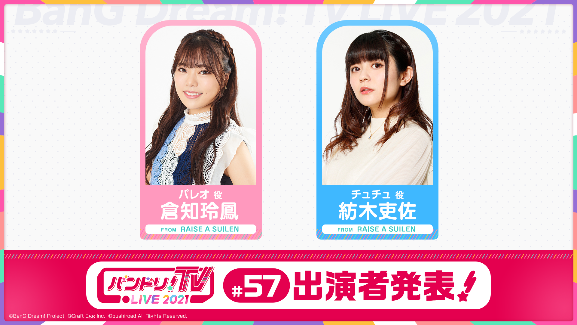 「バンドリ!TV LIVE 2021」はアニメやゲームに出演しているキャストにより、バンドリ!プロジェクトの最新情報などをお届けする生配信番組です!