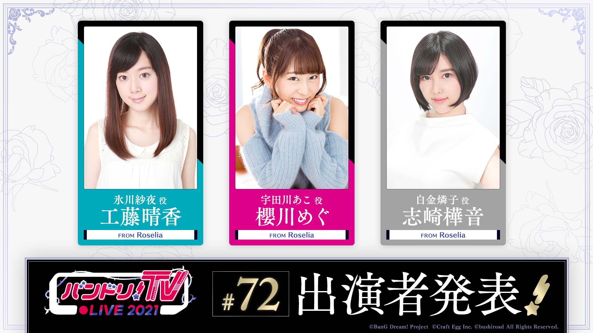 「バンドリ!TV LIVE 2021」はアニメやゲームに出演しているキャストにより、バンドリ!プロジェクトの最新情報などをお届けする生配信番組です!