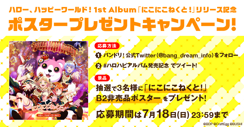 7月14日(水) ハロー、ハッピーワールド!1st Album「にこにこねくと!」のリリースを記念してTwitterキャンペーン開催!