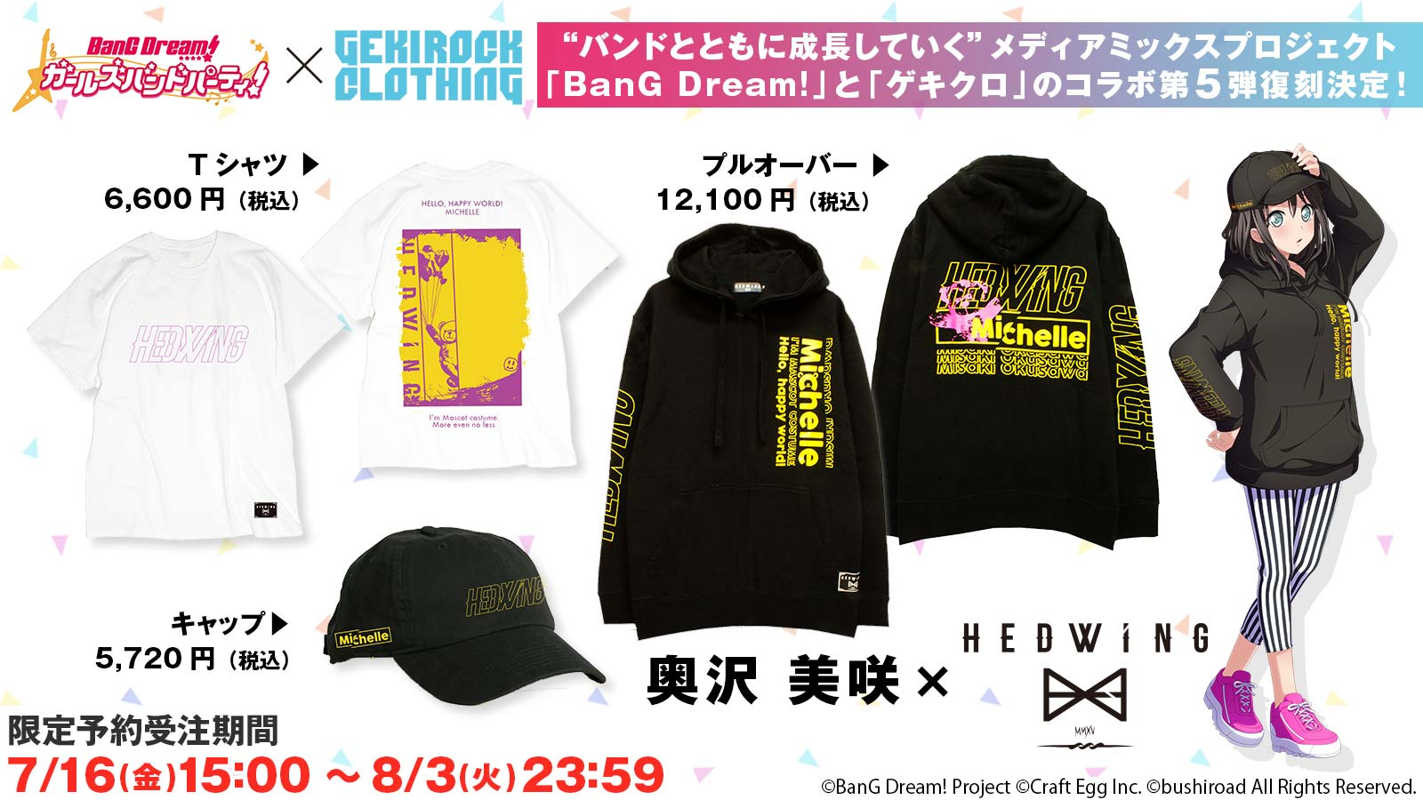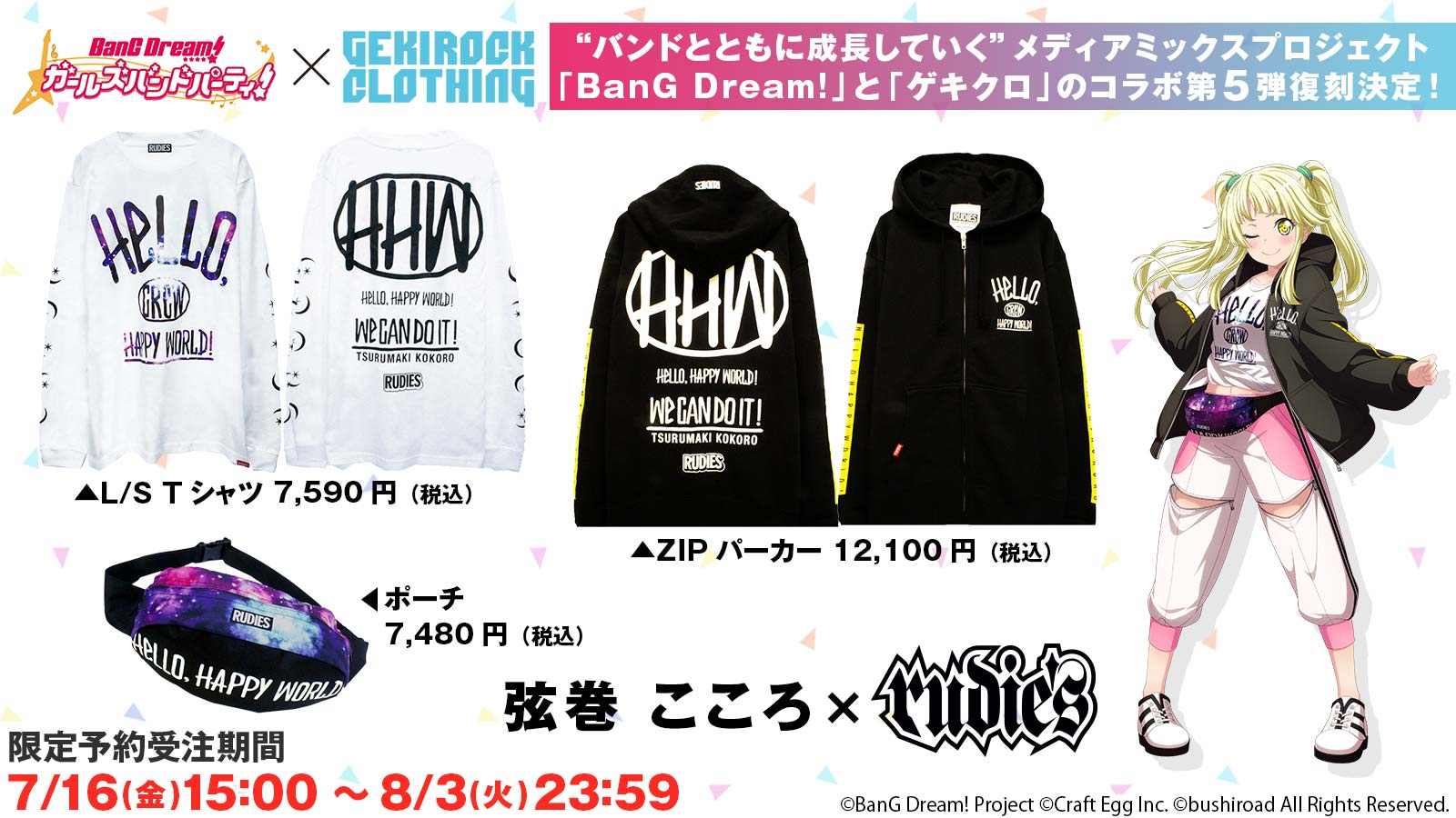 News 2021.07.08グッズ 【激ロックコラボ第5弾】7月16日(金)15:00~再受注販売決定!! 【激ロックコラボ第5弾】7月16日(金)15:00~再受注販売決定!! 7月14日発売 のハロー、ハッピーワールド! 1stアルバム「にこにこねくと!」の発売を記念して、 過去に発売した激ロックコラボ第5弾の再受注販売が決定! 日常でも使いやすいデザインになっておりますので、ぜひチェックしてくださいね! 予約受注期間:7月16日(金)15時~8月3日(火)23時59分まで 詳細は 激ロック公式HPをご確認ください。 SHARE