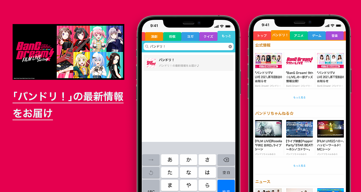 チャンネル内では、バンドリ!に関連する様々な最新情報やニュースなどをまとめてチェック可能です。