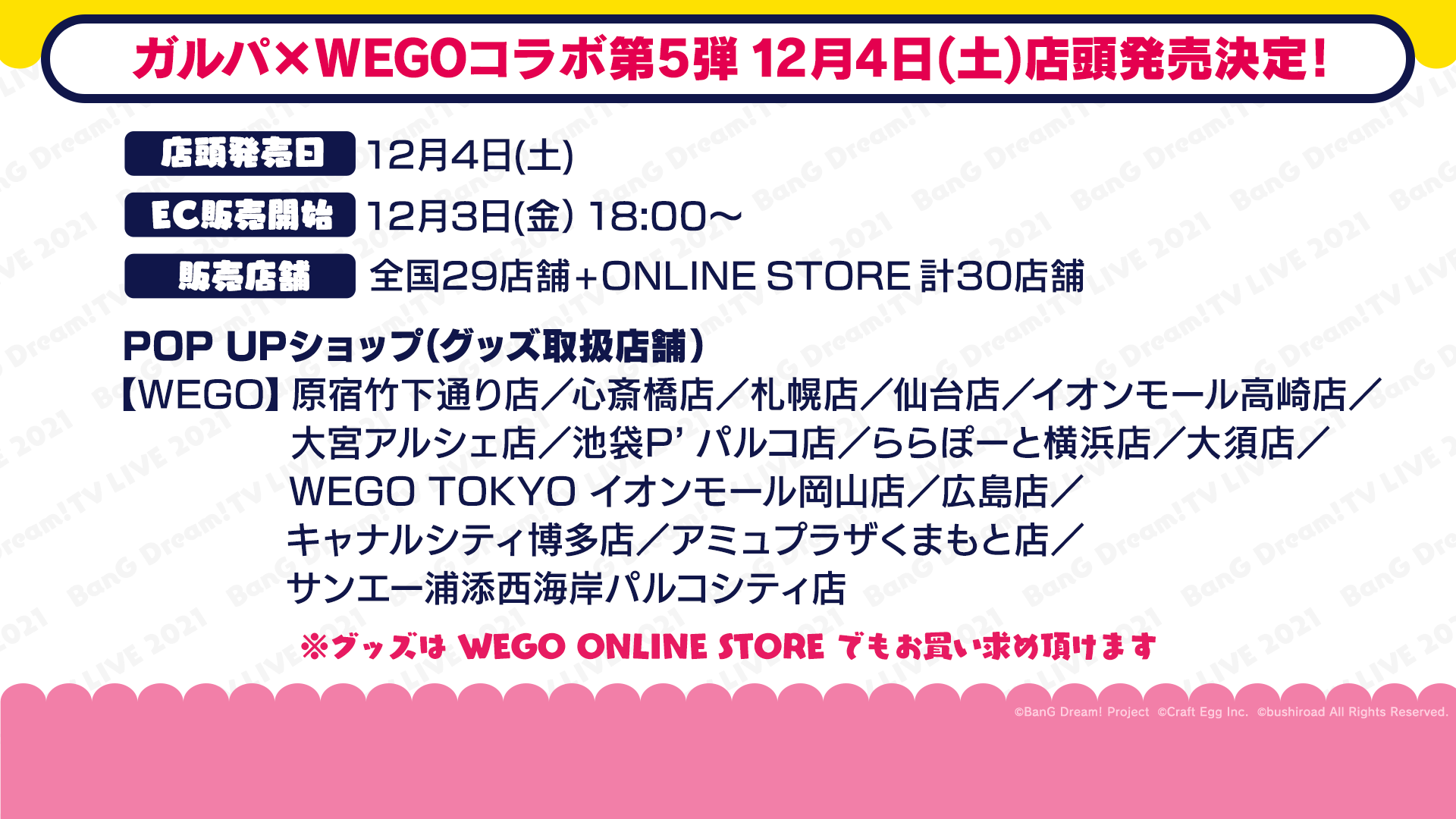 ガルパ×WEGO コラボ 第5弾の店頭発売が、2021年12月4日(土)に決定しました!