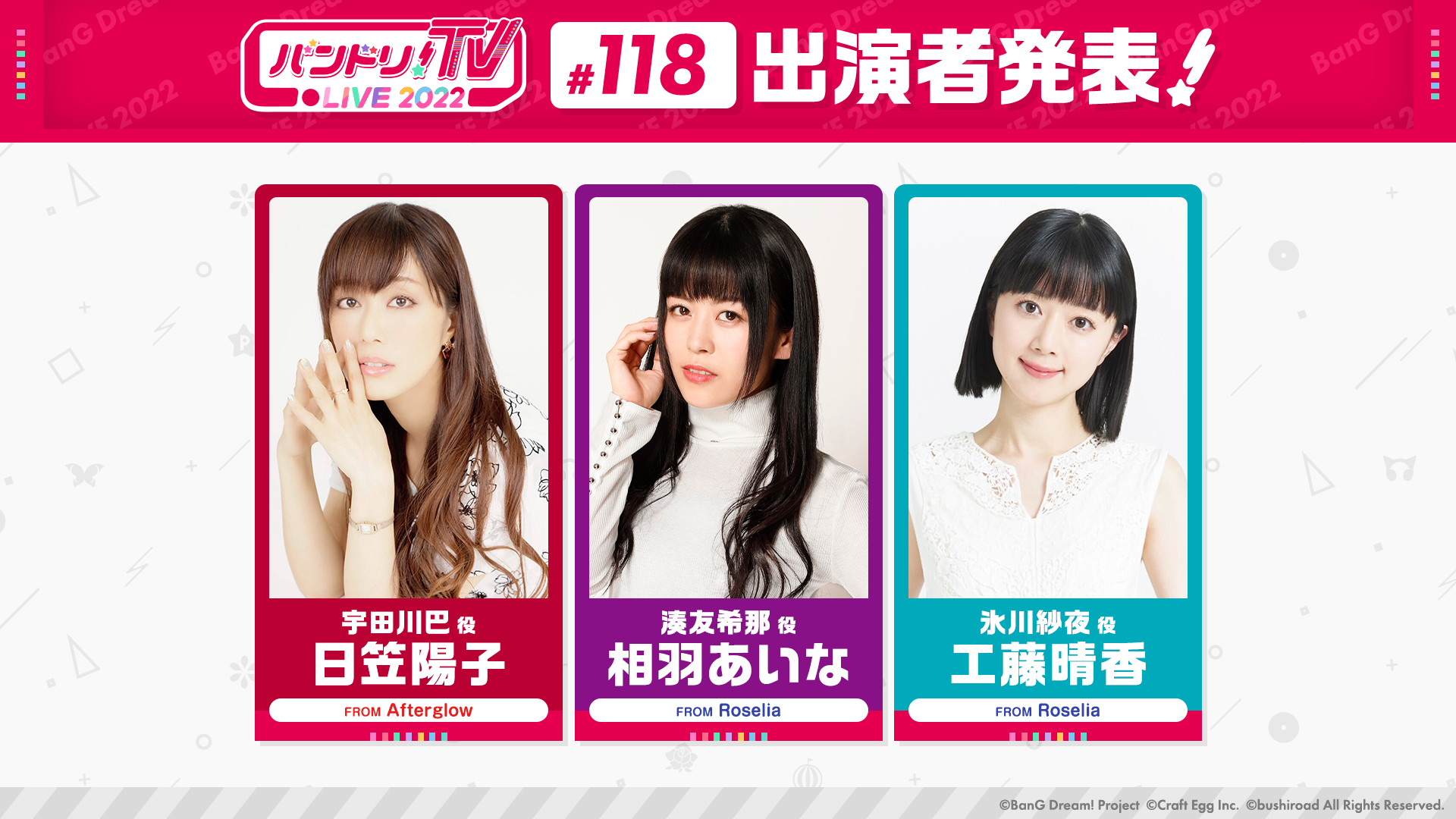 ●「バンドリ!TV LIVE #118」にご出演のキャストさんへのメッセージ