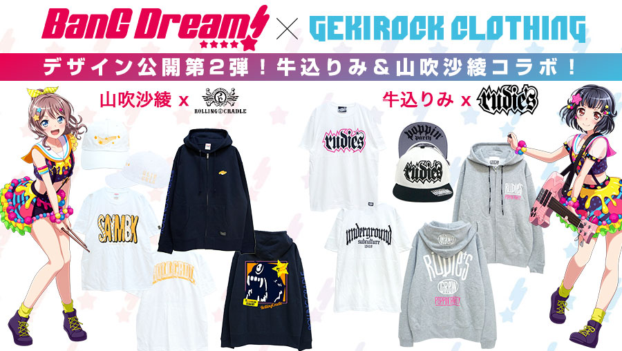 今回は牛込りみ×RUDIE’S、山吹沙綾×ROLLING CRADLEです! Tシャツ、キャップは5月12日・13日の「BnaG Dream!5th☆LIVE」会場でも販売予定♪