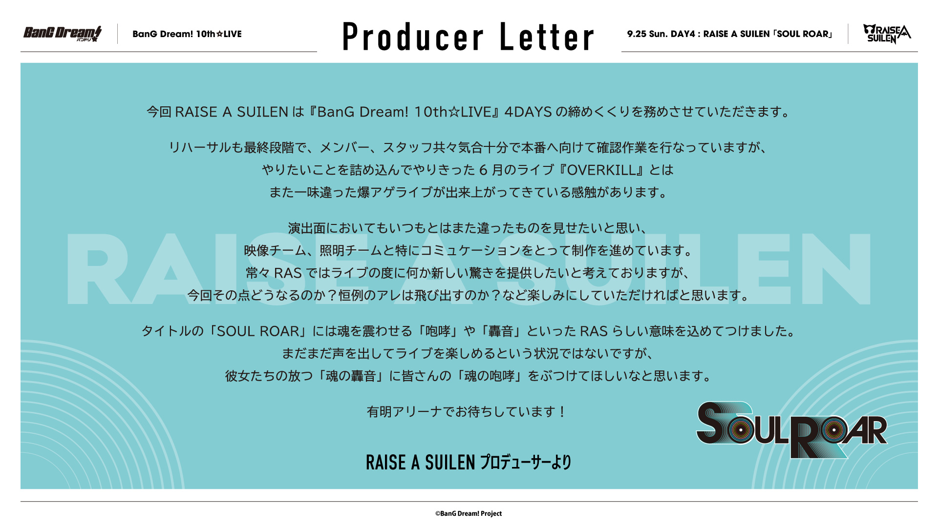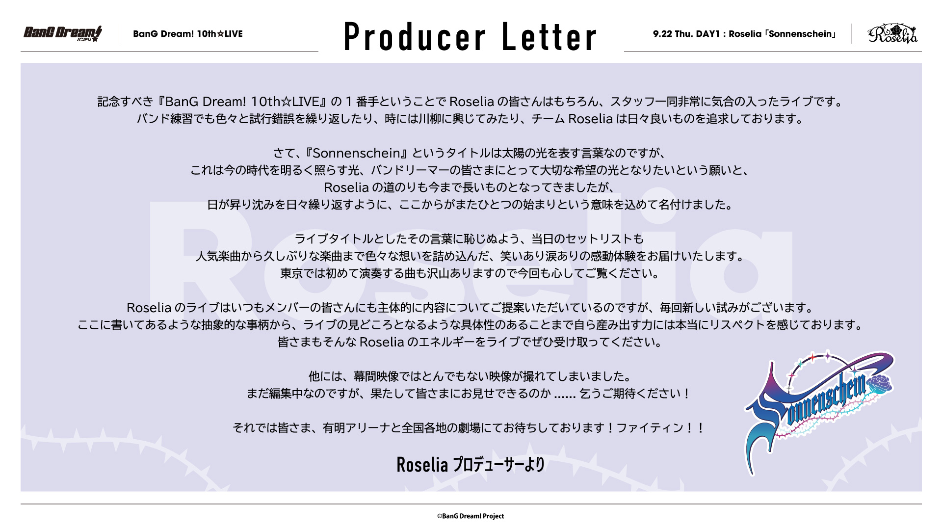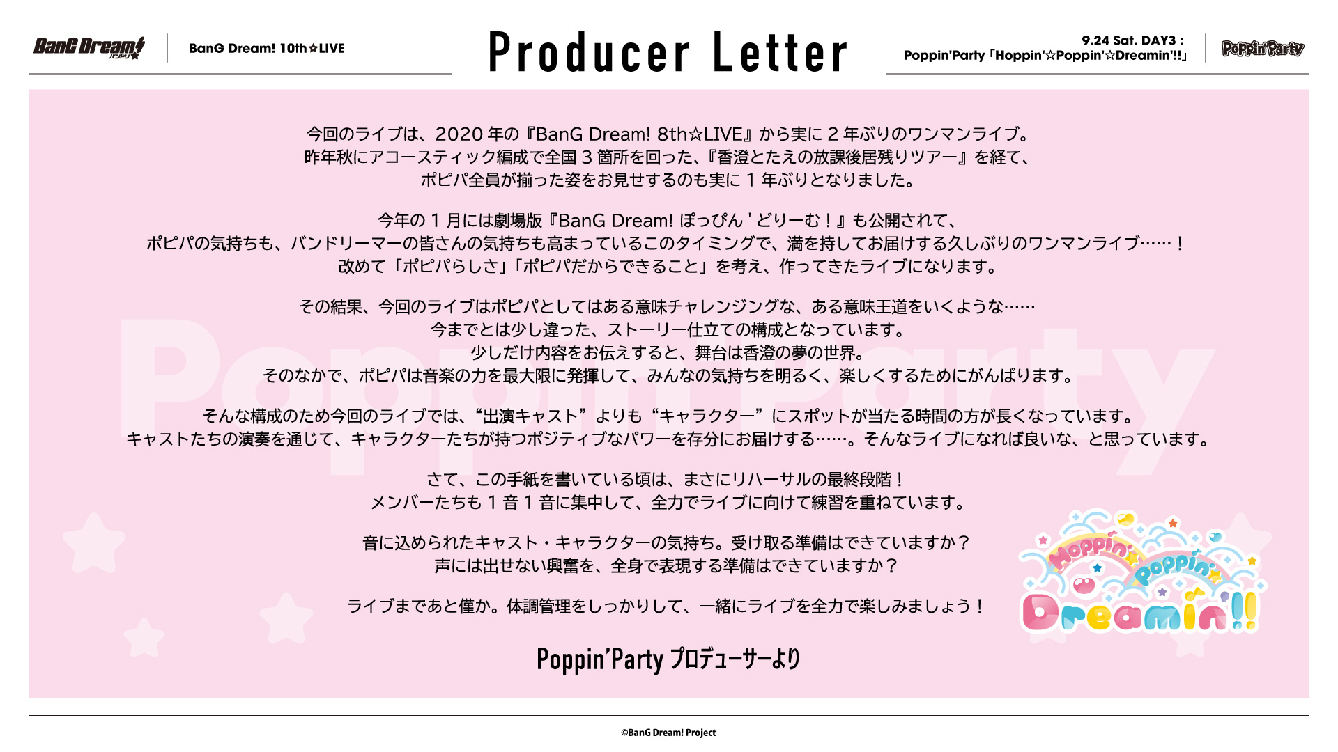 9月22日(木)~25日(日)のBanG Dream! 10th☆LIVE開催を前に、各バンドの“プロデューサーレター”を公開!