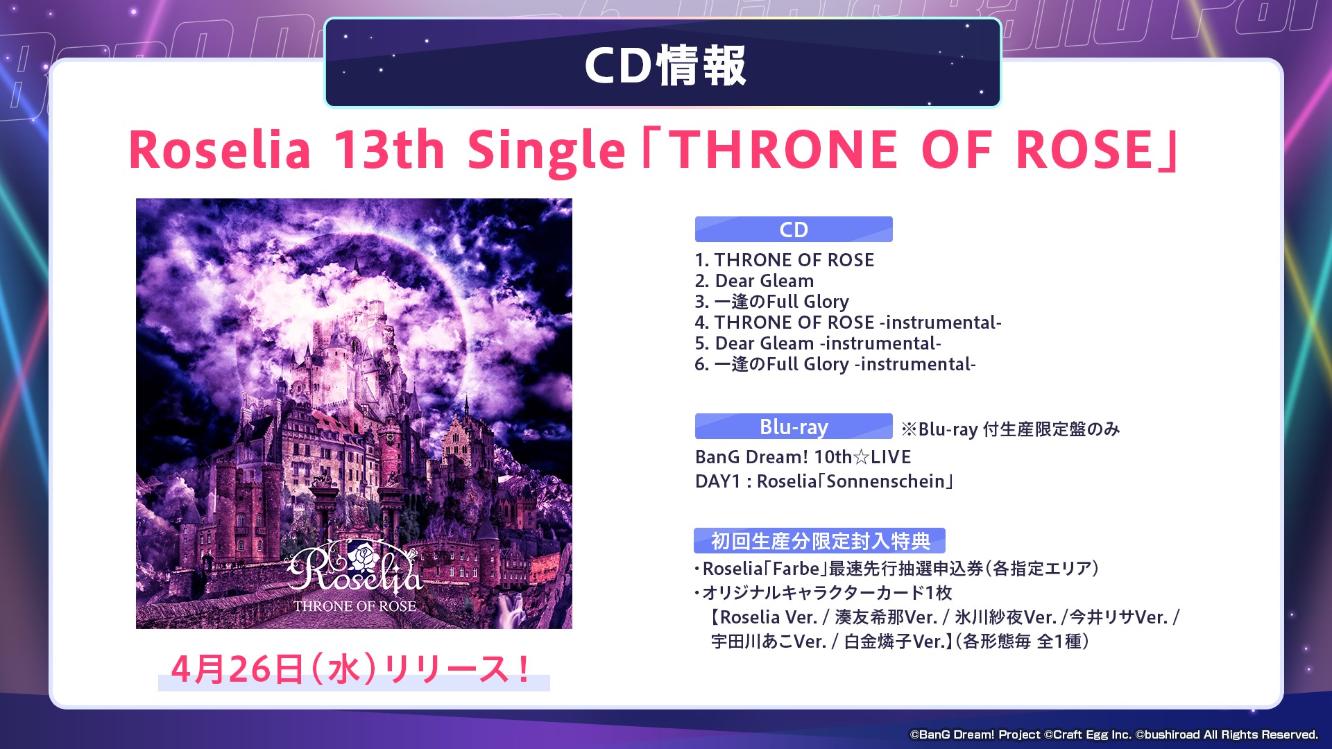 Roselia 13th Single「THRONE OF ROSE」