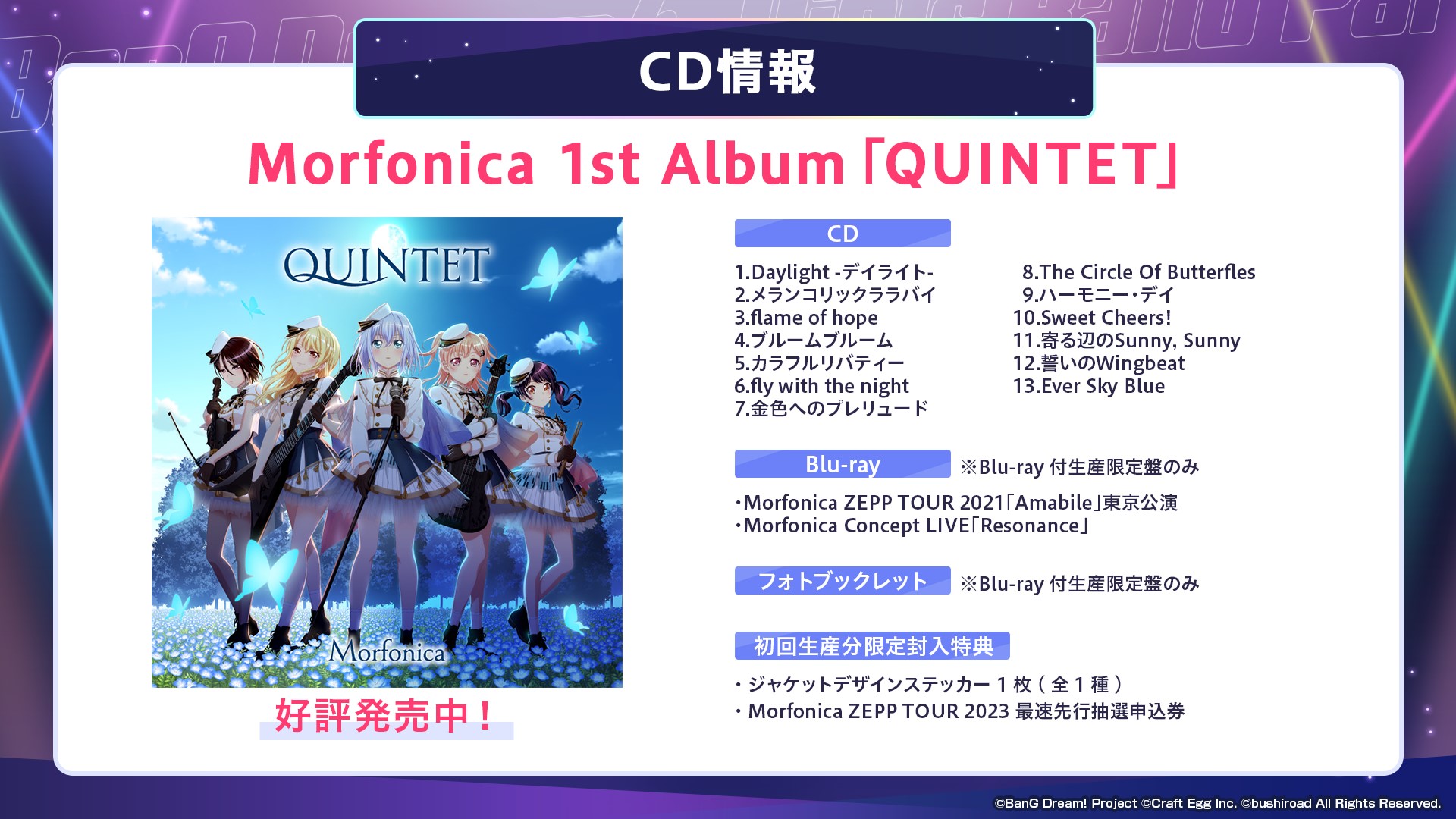 ※チケット最速先行抽選申込券は、好評発売中のMorfonica 1st Album「QUINTET」に封入。