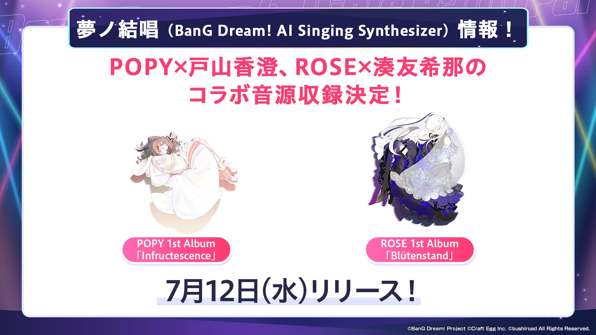 夢ノ結唱 BanG Dream! AI Singing Synthesizer POPY/ROSE 1st Albumコラボ音源収録決定!