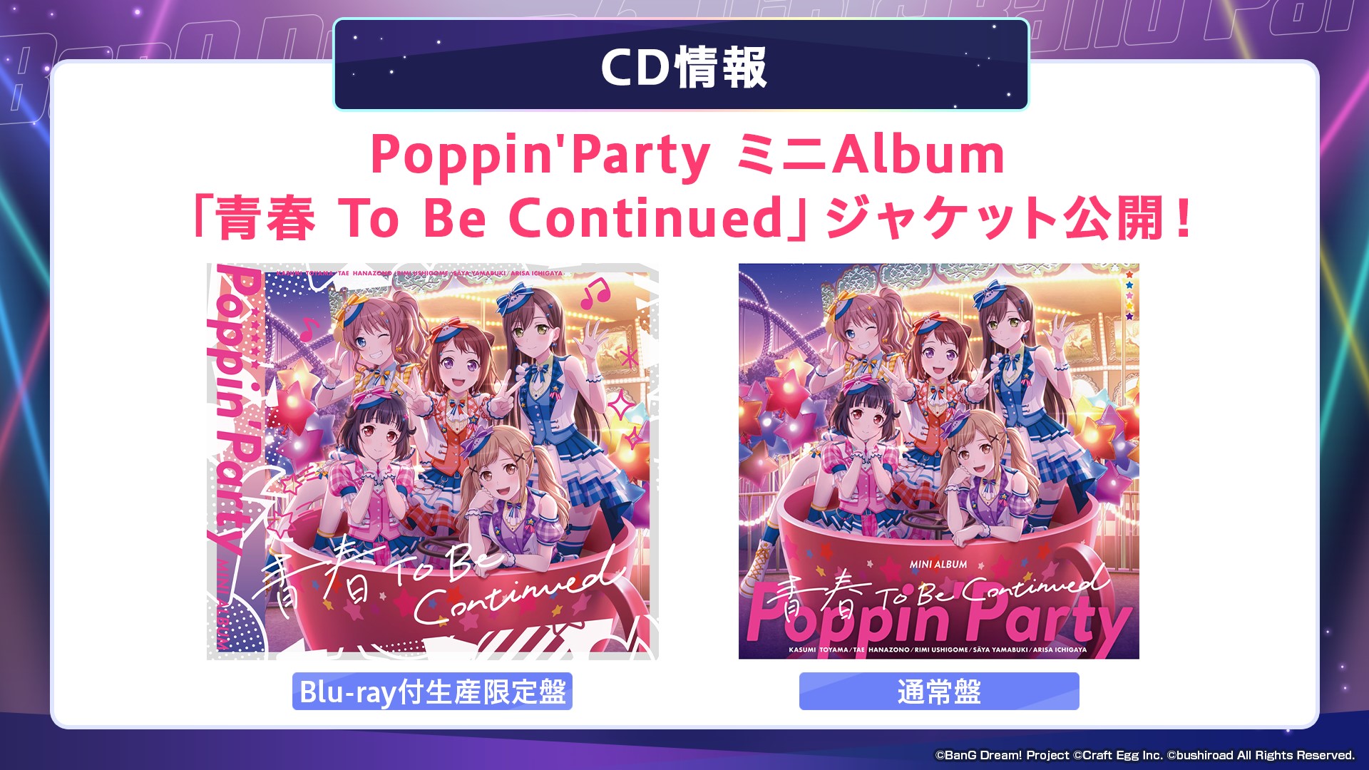 Poppin'PartyミニAlbum「青春 To Be Continued」ジャケットを公開!