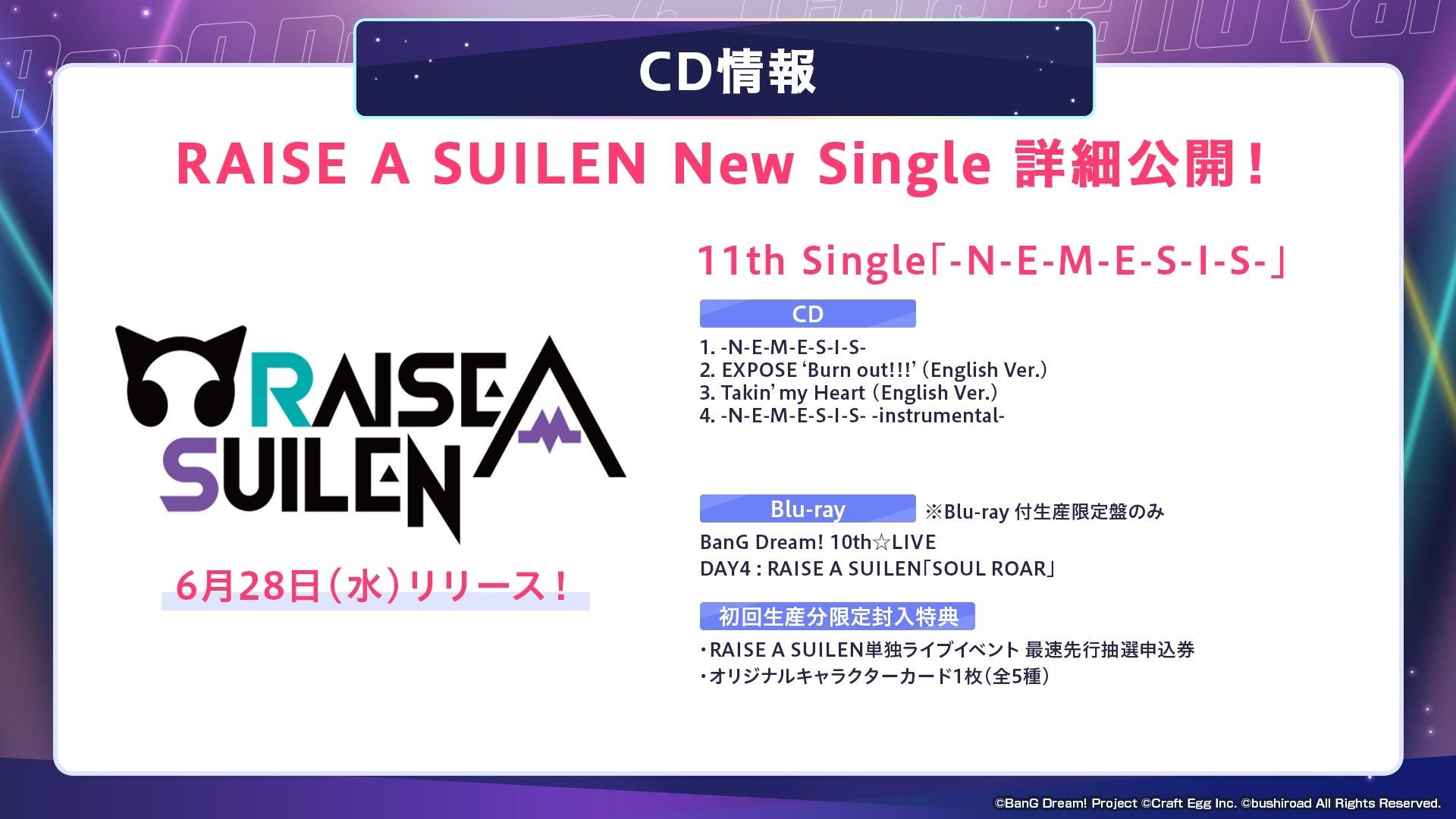 RAISE A SUILEN 11th Single「-N-E-M-E-S-I-S-」