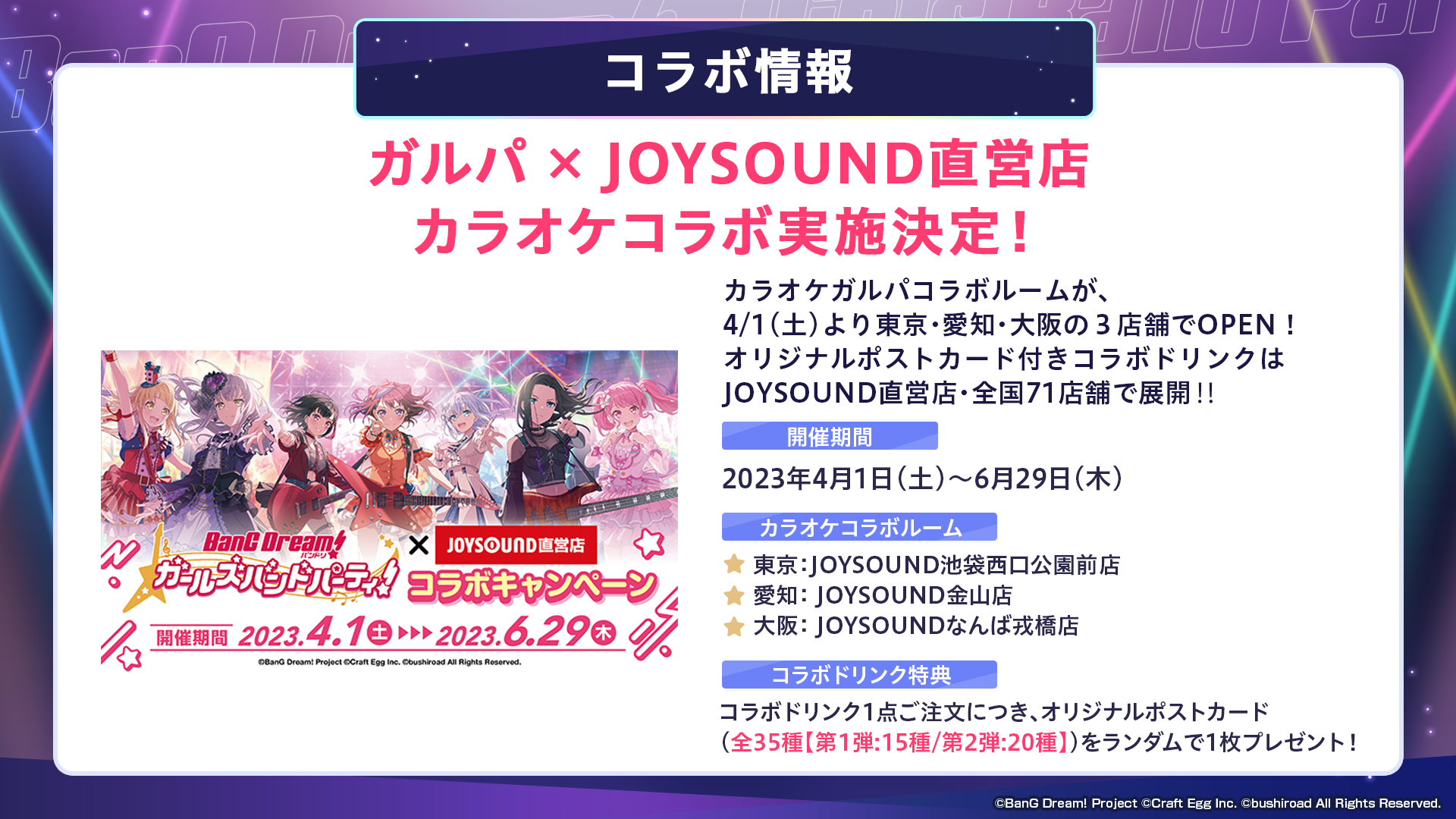 ガルパ×JOYSOUND直営店 カラオケコラボ実施決定!
