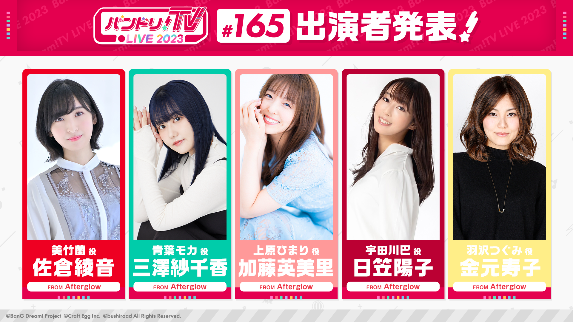 佐倉綾音(美竹蘭 役)、三澤紗千香(青葉モカ 役)、加藤英美里(上原ひまり 役)、日笠陽子(宇田川巴 役)、金元寿子(羽沢つぐみ 役)
