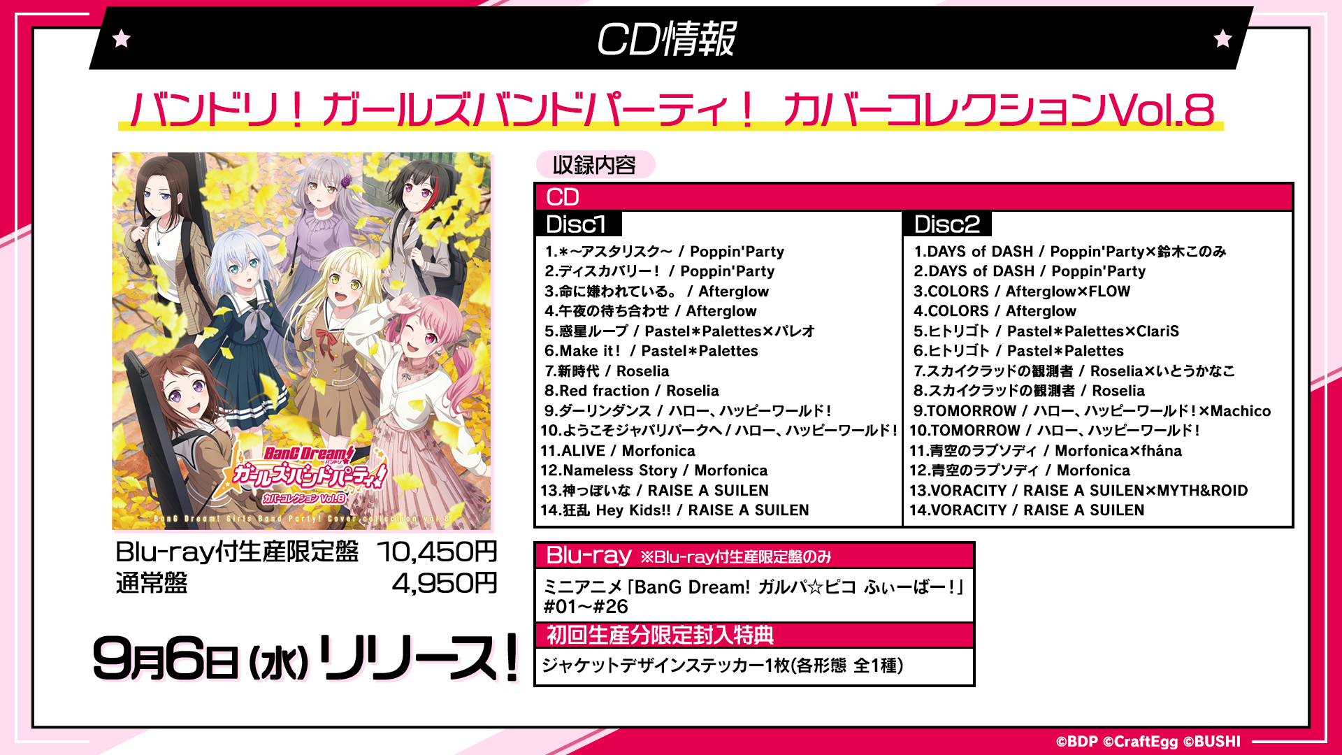 2023年9月6日(水)に「バンドリ! ガールズバンドパーティ! カバーコレクションVol.8」のリリースが決定!
