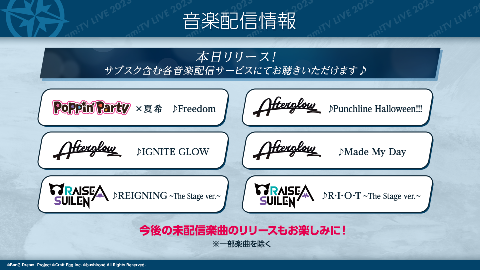 今後、バンドリ!未配信楽曲の音楽配信を随時予定しているのでお楽しみに♪