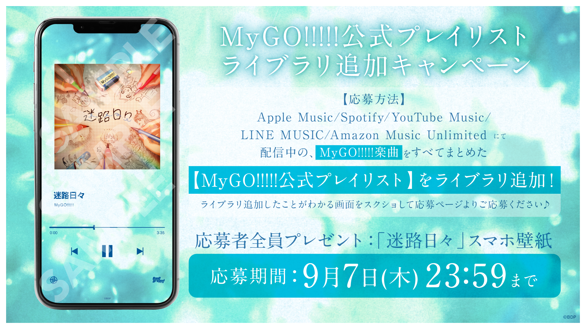 MyGO!!!!!「迷路日々」の音楽配信を記念して、MyGO!!!!!公式プレイリストのライブラリ追加キャンペーンを実施いたします!
