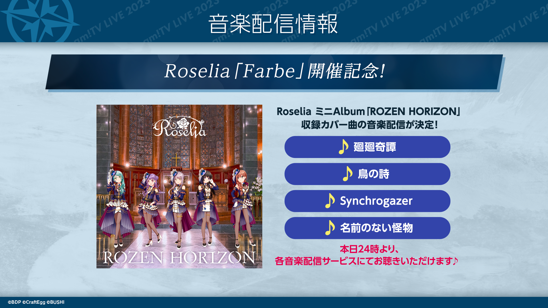 Roselia ミニAlbum「ROZEN HORIZON」より未配信だった以下のカバー楽曲が音楽配信決定!