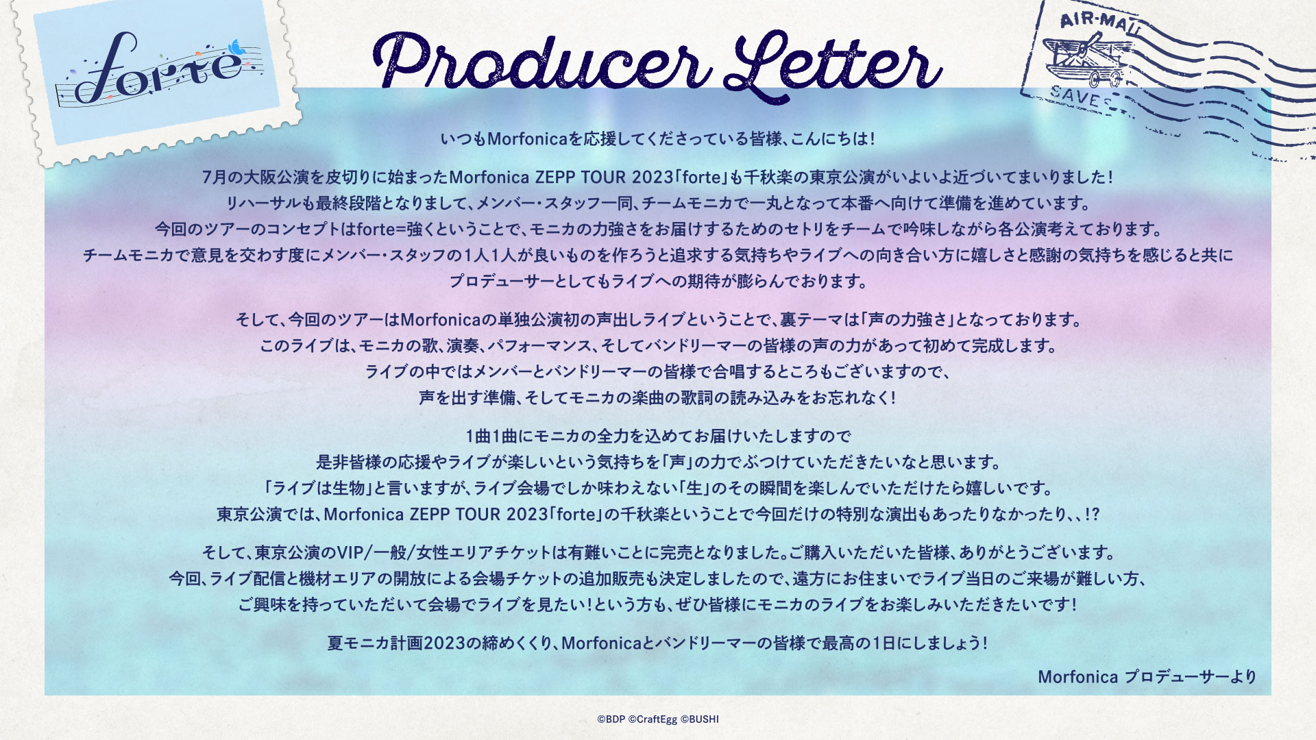 10月5日(木) Morfonica ZEPP TOUR 2023「forte」東京公演開催を前に、Morfonica プロデューサーより“プロデューサーレター”を公開!