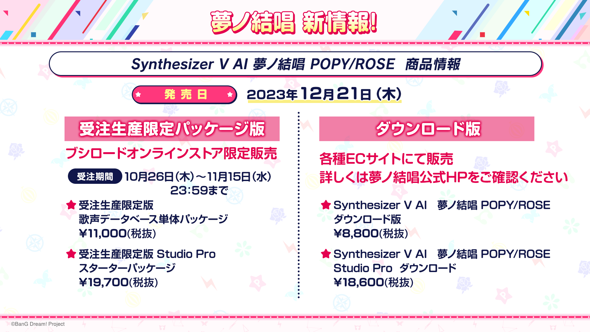 Synthesizer V AI 夢ノ結唱 POPY/ROSEの開発・発売が決定!