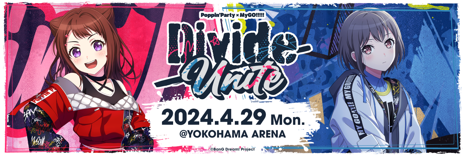 2024年4月29日(月・祝)に横浜アリーナにて開催するPoppin'Party×MyGO!!!!! 合同ライブ「Divide/Unite」に向けて、予習プレイリストを公開!