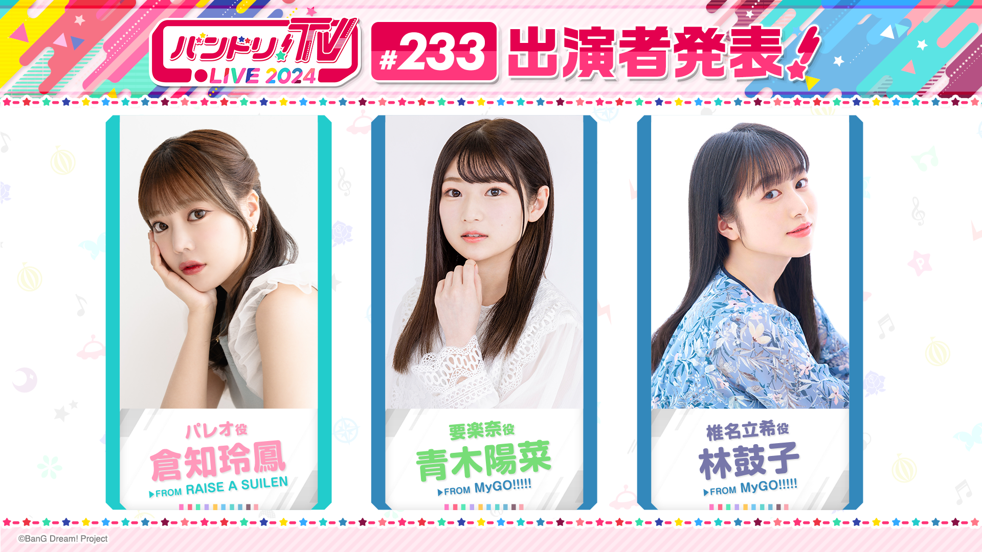 ●「バンドリ!TV LIVE 2024」#233 にご出演のキャストさんへのメッセージ