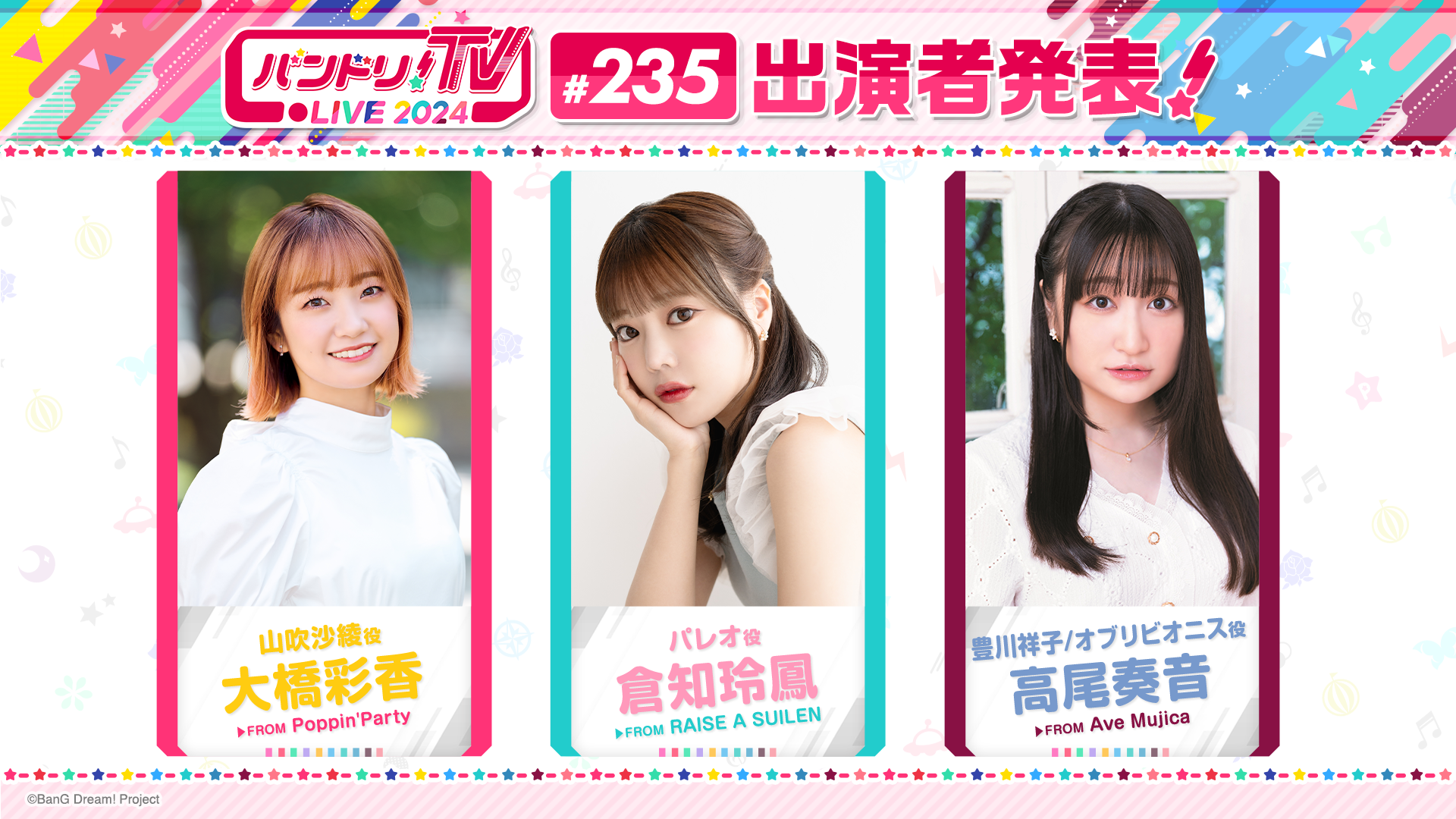 ●「バンドリ!TV LIVE 2024」#235 にご出演のキャストさんへのメッセージ