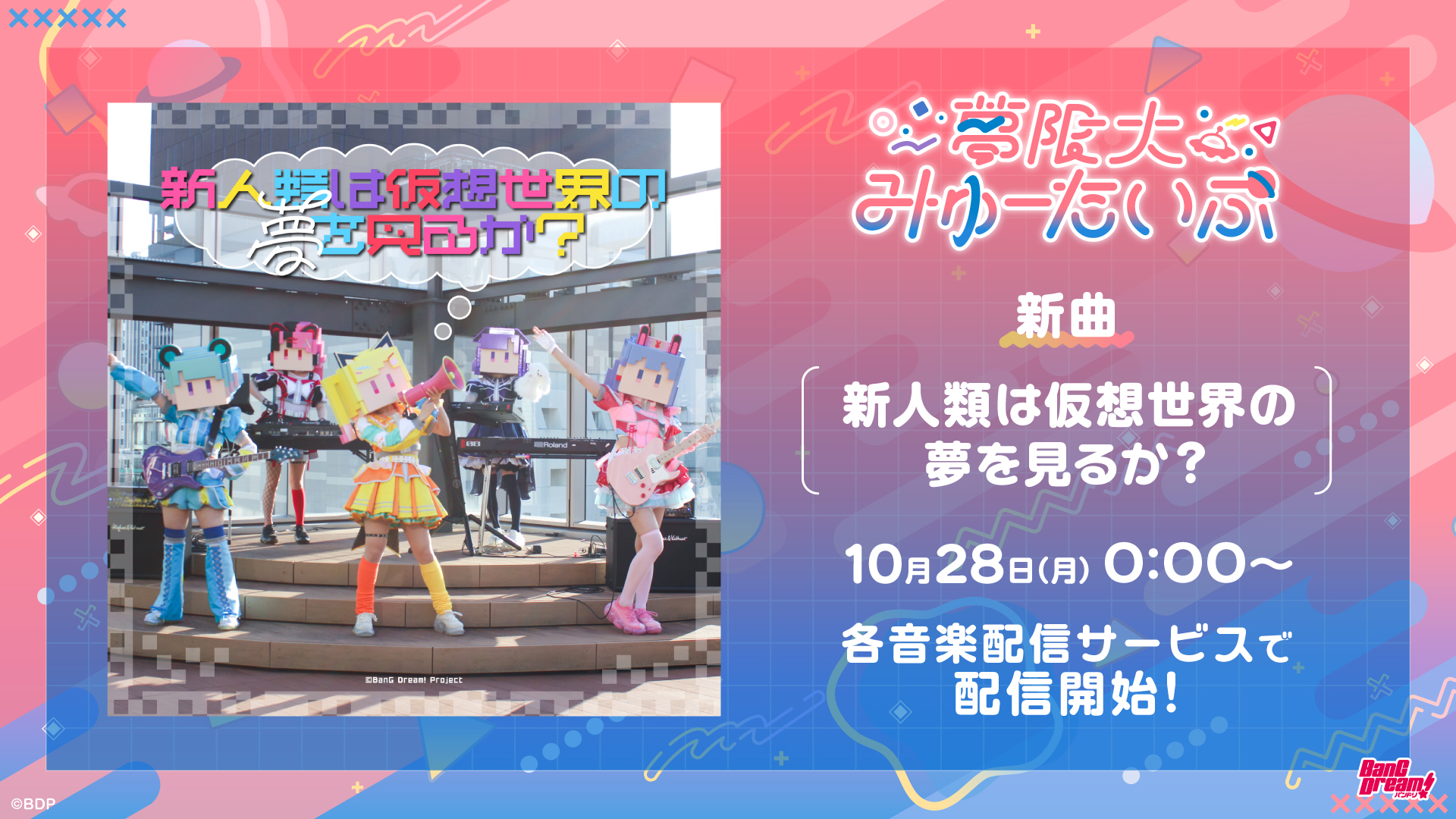 各音楽配信サービスにて、新曲「新人類は仮想世界の夢を見るか?」の配信が10月28日(月) 0時よりスタートしました。