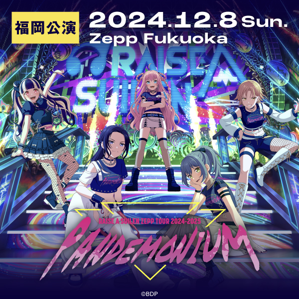 2024年12月8日(日)に開催したRAISE A SUILEN ZEPP TOUR 2024-2025「PANDEMONIUM」福岡公演にて披露したセットリストのプレイリストを、各音楽配信サービスにて公開中です。
