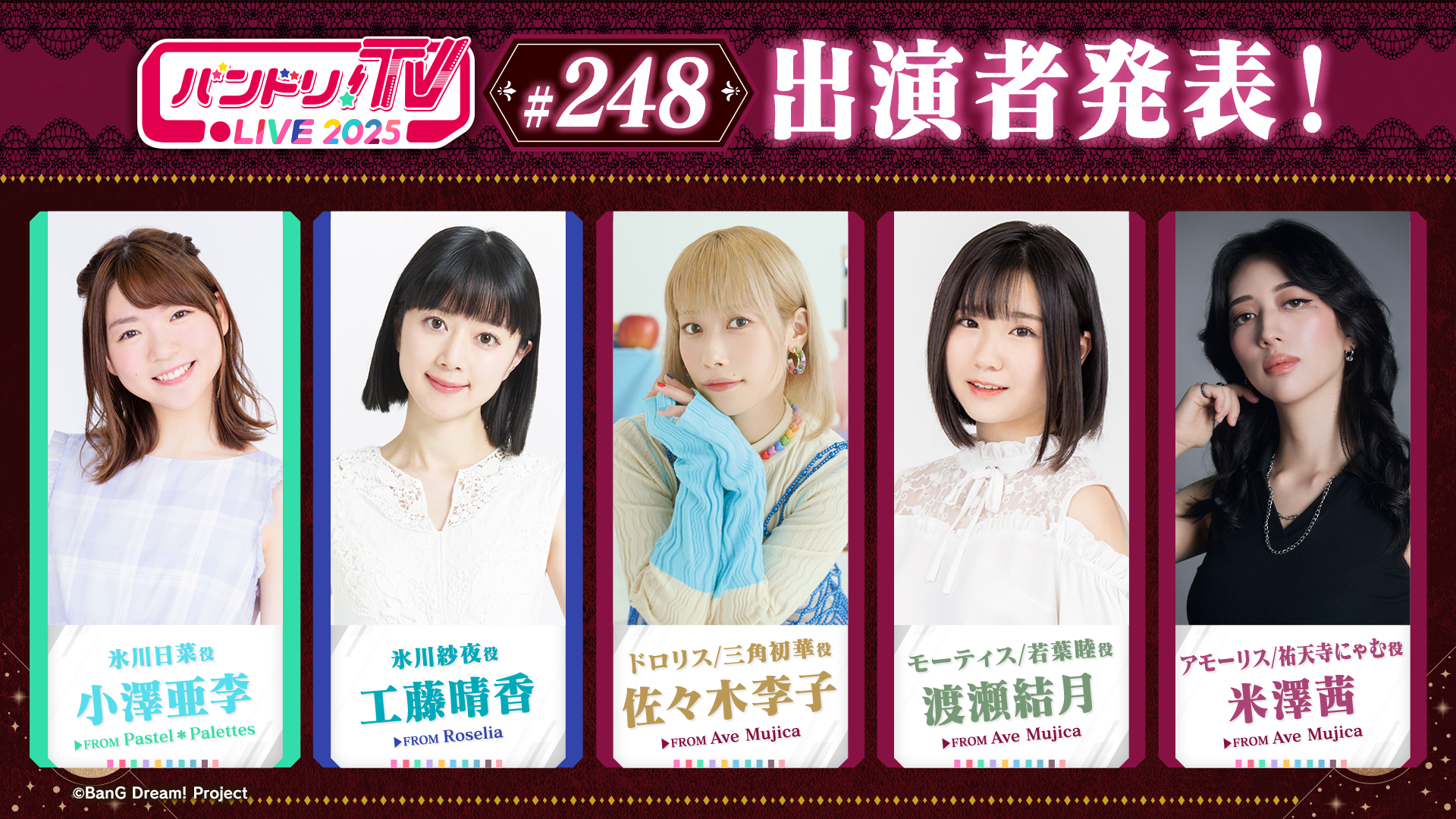 「バンドリ!TV LIVE 2025」#248 ではTVアニメ「BanG Dream! Ave Mujica」のご感想や、ご出演のキャストさんへのメッセージを募集中!