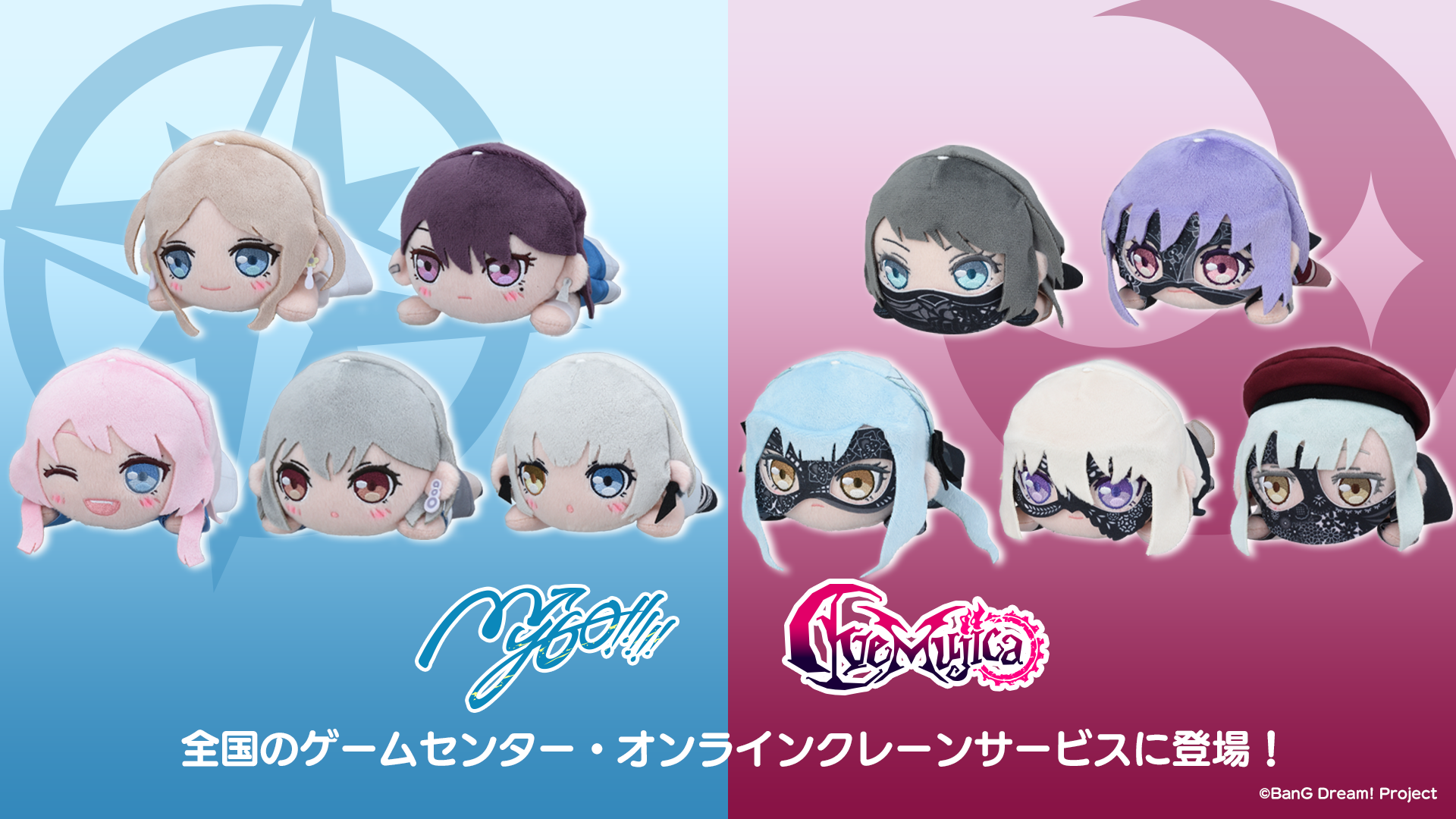 セガプライズより、MyGO!!!!!・Ave Mujicaのメンバー総勢10名が寝そべりぬいぐるみになって、クレーンゲームに登場します!