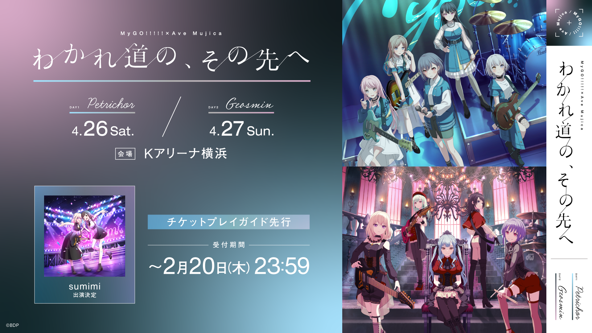 4月26日(土)・27日(日)に、Kアリーナ横浜にてMyGO!!!!!×Ave Mujica 合同ライブ「わかれ道の、その先へ」を開催します。