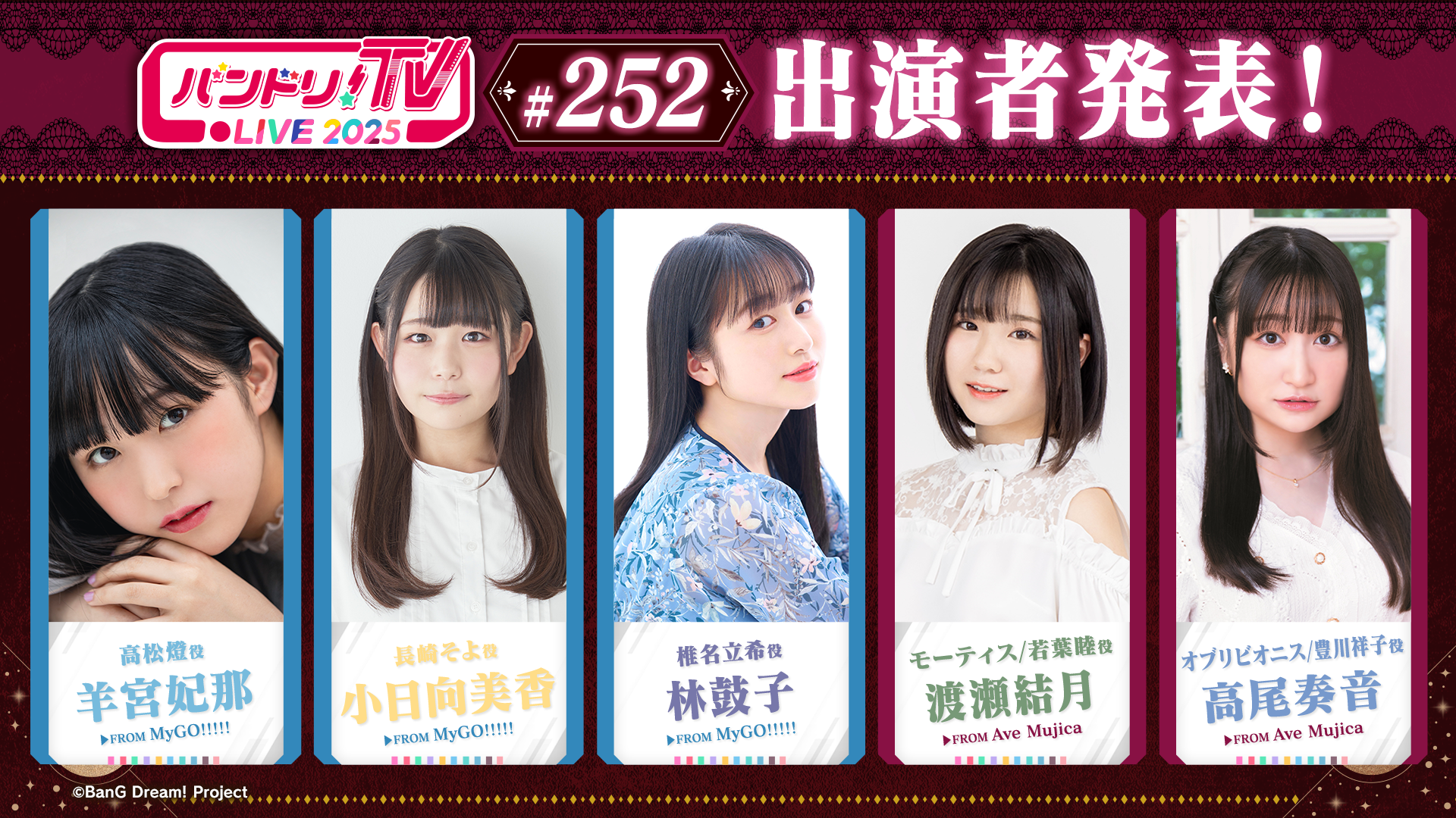 「バンドリ!TV LIVE 2025」#252 ではTVアニメ「BanG Dream! Ave Mujica」のご感想や、ご出演のキャストさんへのメッセージを募集中!