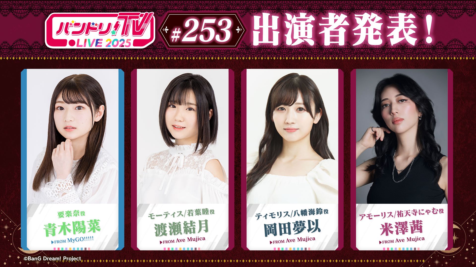 「バンドリ!TV LIVE 2025」#253 ではTVアニメ「BanG Dream! Ave Mujica」のご感想や、ご出演のキャストさんへのメッセージを募集中!